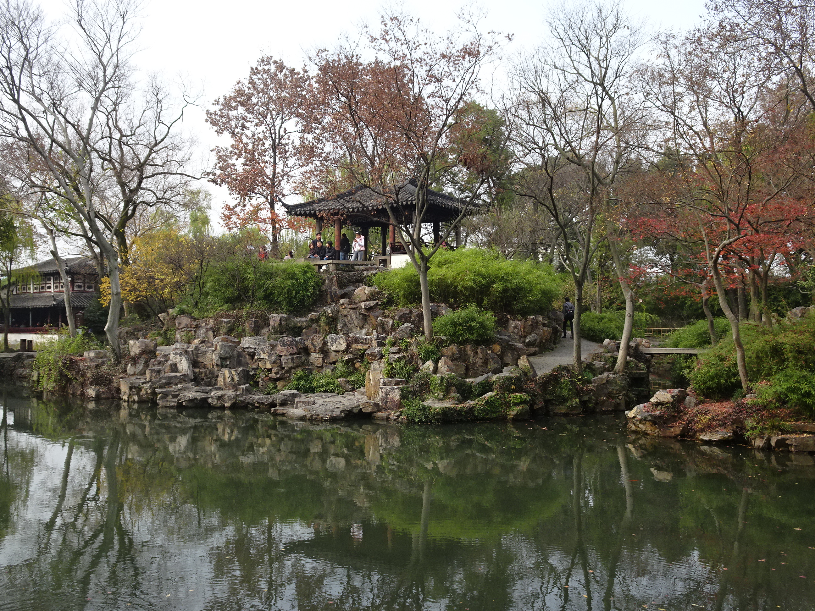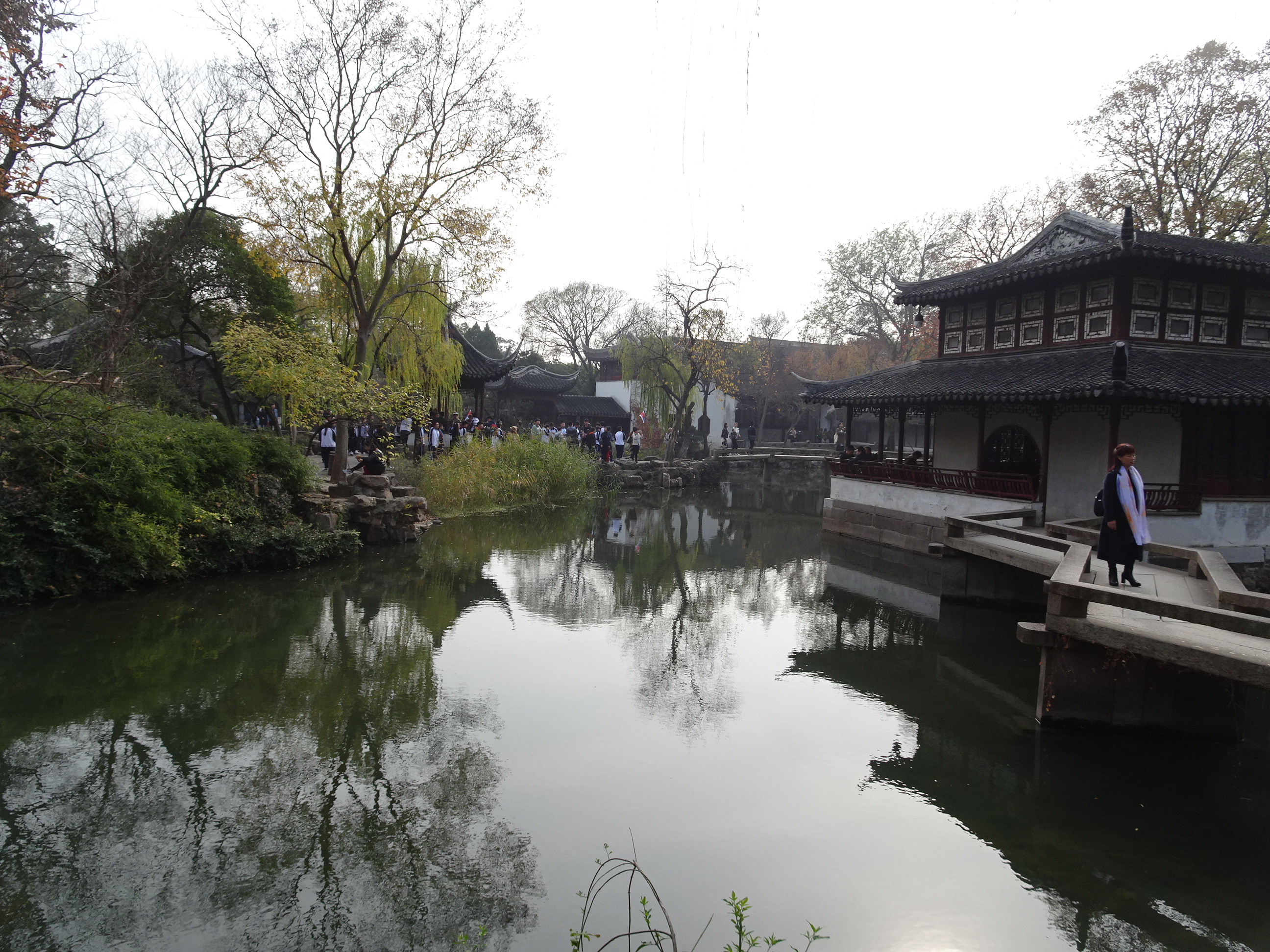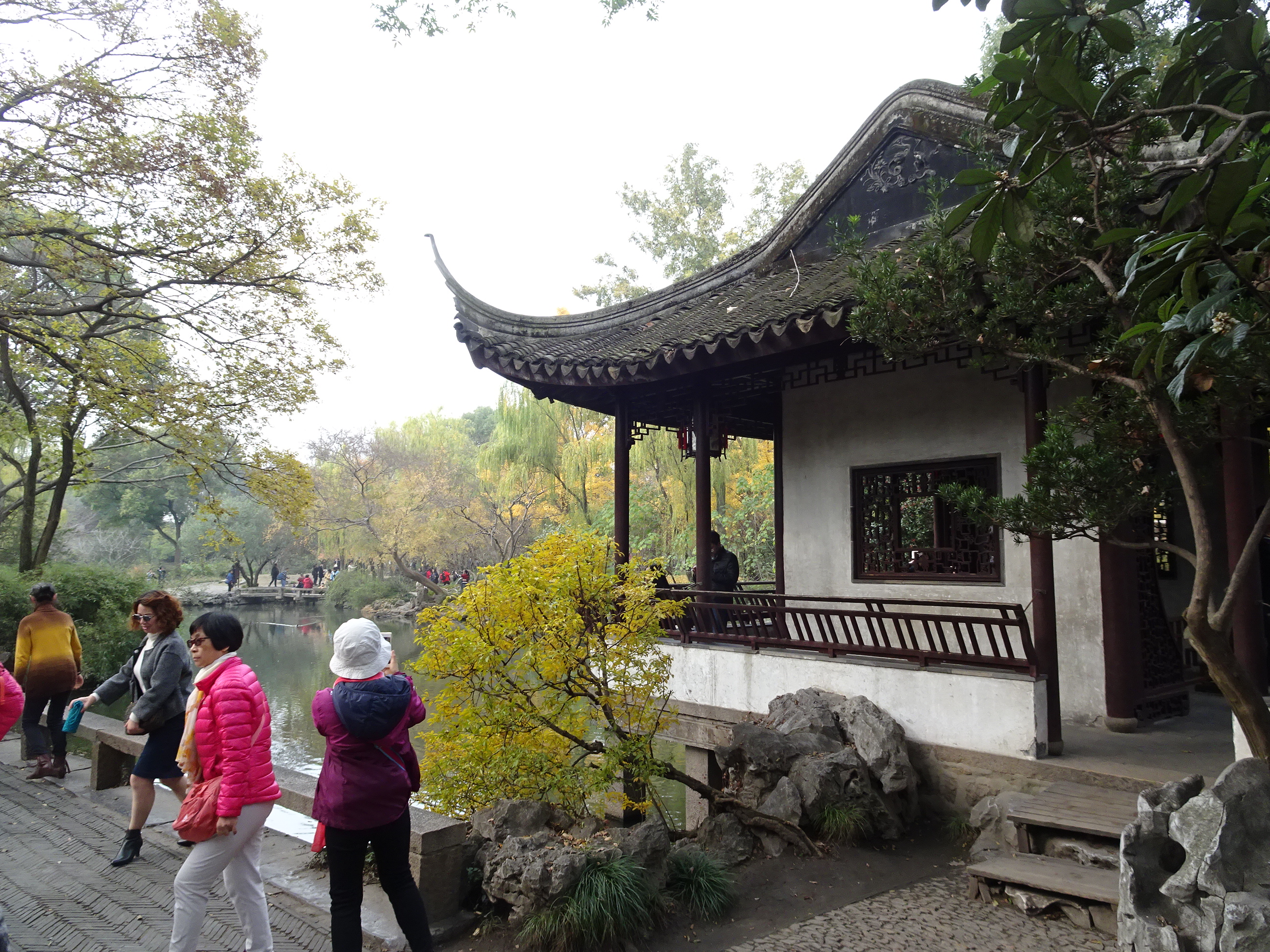 Din pricina întârzierilor de care am povestit mai sus, nu am avut timp cât ne-am fi dorit la Suzhou. Am trecut pe la Suzhou Museum, fostul palat transformat în muzeu de istorie iar apoi am vizitat una dintre grădini. Sunt câteva zeci de grădini care pot fi vizitate în centrul vechi. Am ales să mergem la cea mai cunocută care și face parte din patrimoniul mondial UNESCO: Humble’s Administrator Garden (grădina administratorului umil). Această grădină, contrar numelui său este de o bogăție impresionantă. Am văzut acolo peisaje frumoase, pavilioane și poduri vechi de sute de ani și flori și copaci cu frunze ruginii. Ne-a luat o oră să vizităm grădina la pas grăbit.