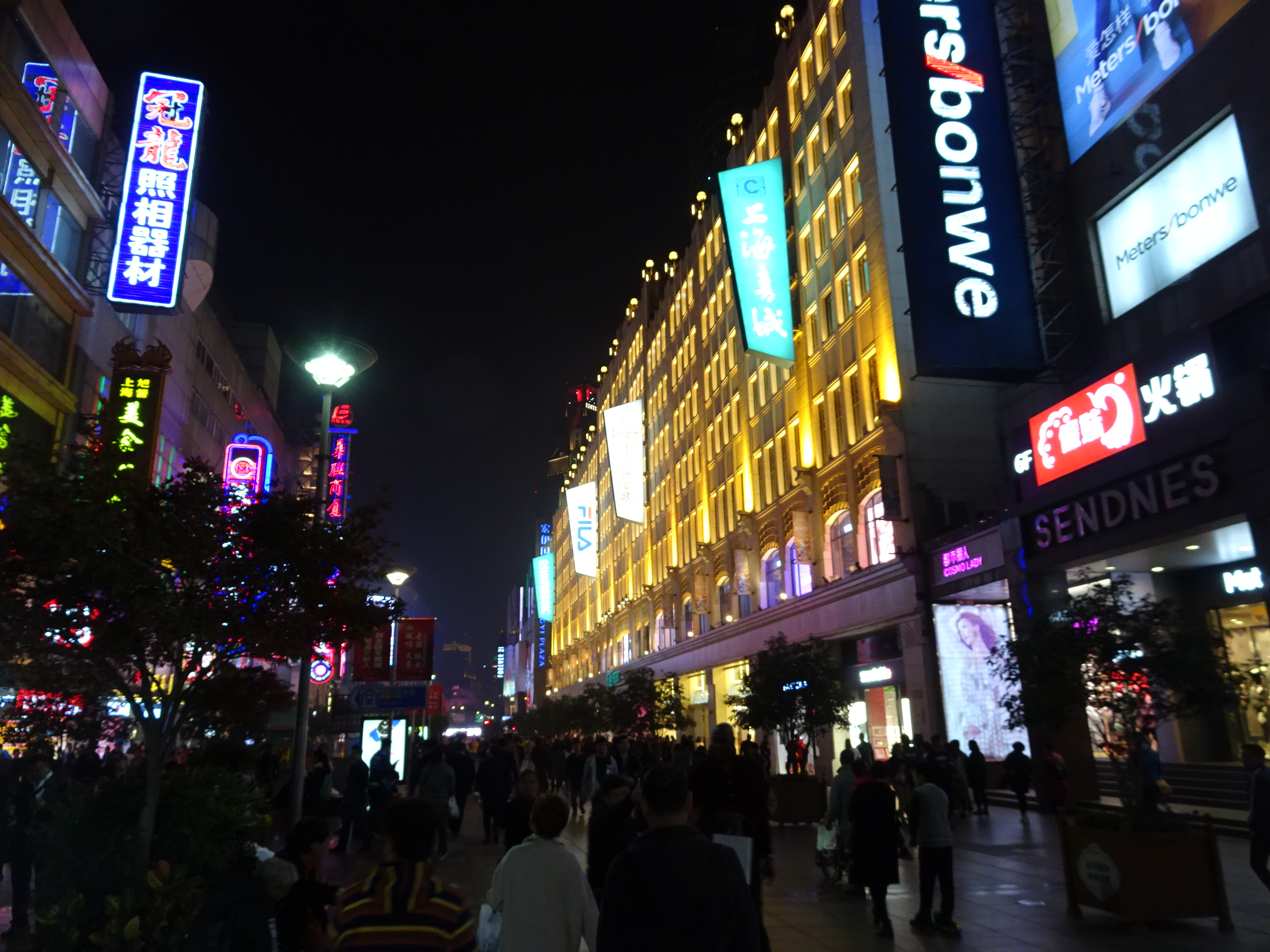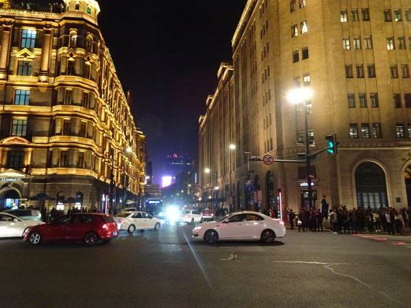 Am stat la hotelul Metropolo Classic aflat chiar pe East Nanjing Road, principala stradă pietonală din Shanghai. Seara după ce ne-am cazat am ieșit la plimbare prin împrejurimi. Pe strada Nanjing se găsesc zeci de mall-uri și magazine ale marilor branduri internaționale, iar pe străduțele laterale se pot găsi și magazine cu suveniruri și produse tradiționale. Strada este ultra-aglomerată de vizitatori, în special de turiști chinezi, veniți la plimbare sau la shopping.