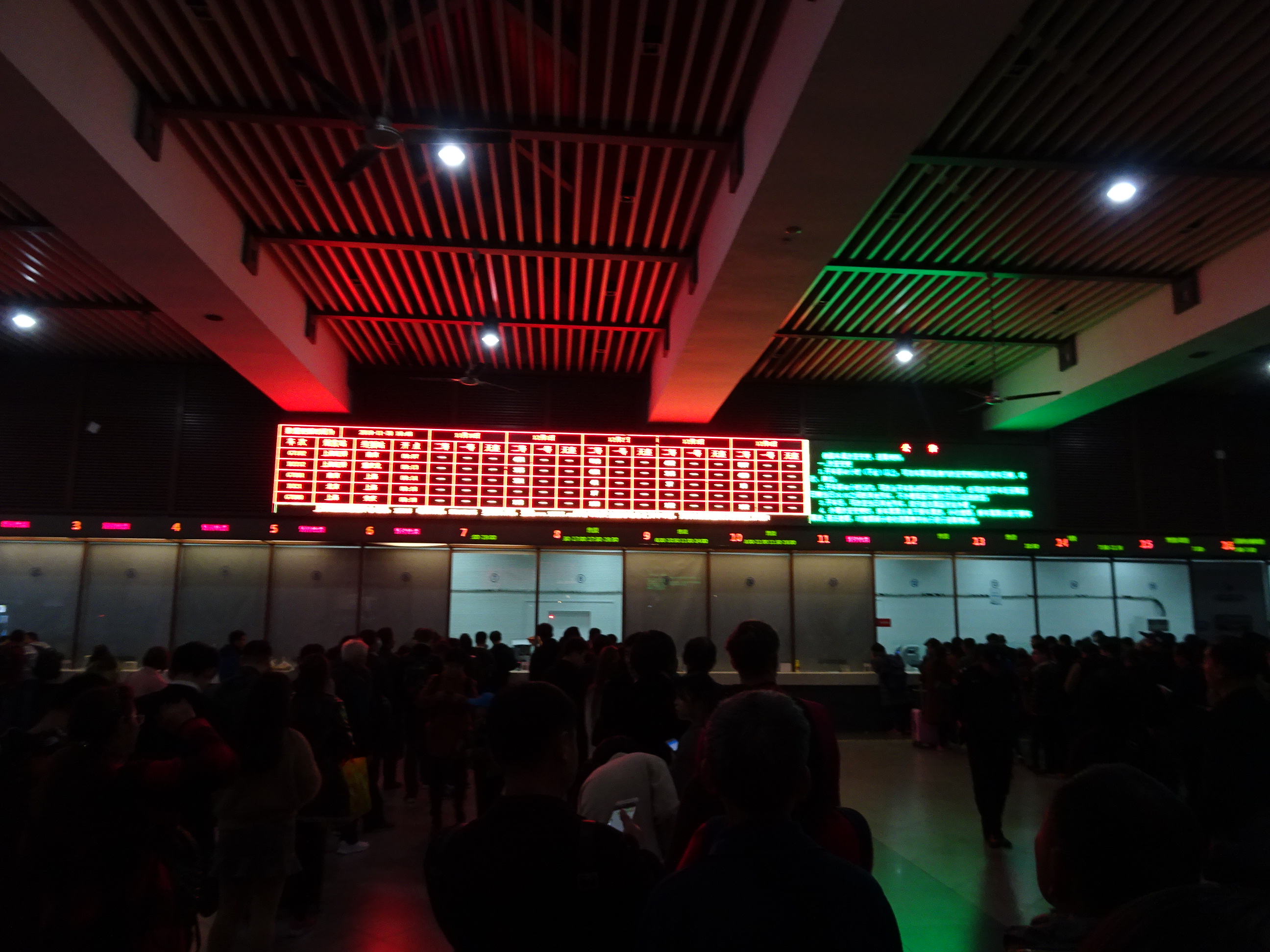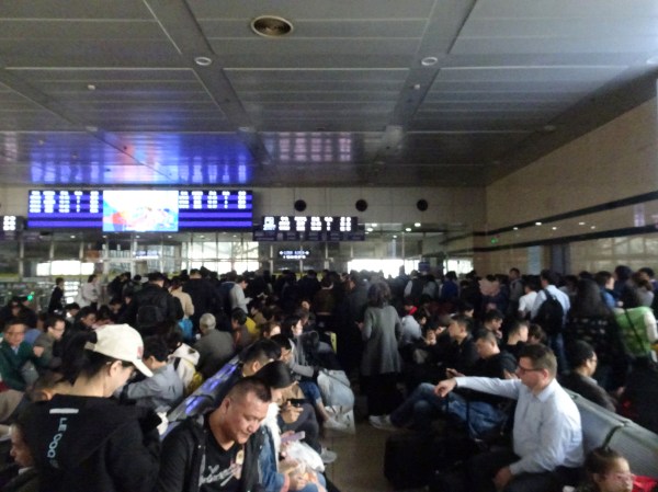 Mai departe am luat un taxi spre gară, care ne-a ocolit prin tot orașul până când tariful a ajuns de 3 ori cât ar fi trebuit să fie. Ce e drept, taxiul prin Shanghai e foarte ieftin și nu ne-a păsat atât de mult de banii în plus, cât de timpul pierdut. În sfârșit ajunși la gară ne-am îndreptat spre casa de bilete special rezervată pentru străini. Biletele de tren în China se pot cumpăra online, dar plata se poate face doar cu carduri chineze astfel că turiștii nu au opțiunea decât de a lua de la casă.