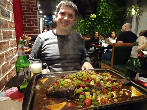 Mai târziu am revenit pe Nanjing Road unde pe nesimțite ne-am trezit încărcați cu pungi de cumpărături iar aproape de hotel am mers la cină la un restaurant tradițional. Am mâncat un pește la grătar cu legume și orez servit într-o tavă uriașa, iar după masa copioasă am dormit tun.