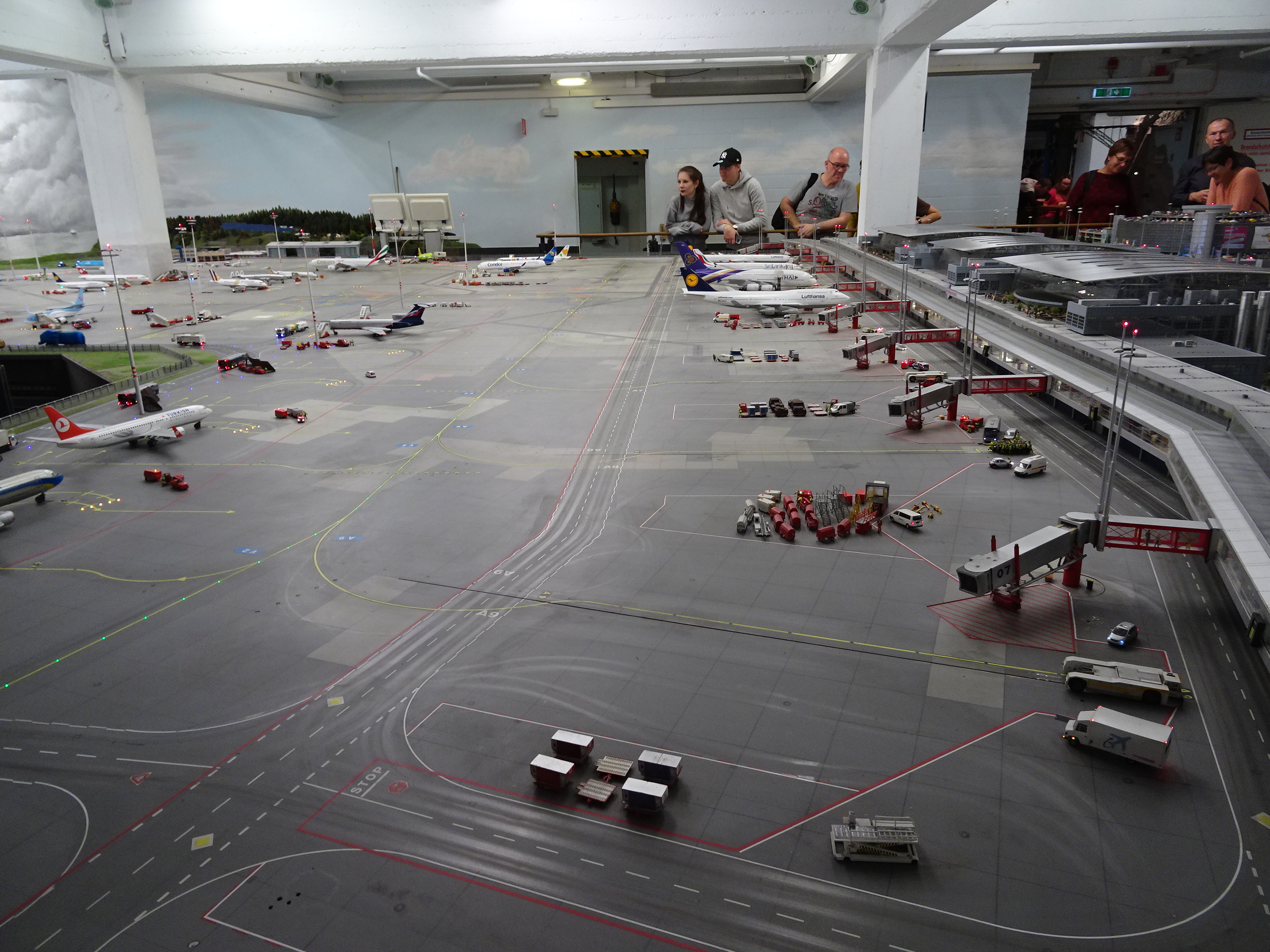 Miniatur Wunderland ocupă întreaga clădire pe 3 etaje și este absolut fascinant. Sistemele sunt extraordinar de complicate și sunt zeci de angajați care lucrează constant pentru bună funcționare a muzeului. Am stat acolo doar 2 ore dar am fi putut sta lejer toată ziua admirând modelele. Toate sunt fascinante dar unul dintre ele m-a uluit efectiv: Aeroportul în miniatură. Nu știu dacă mai există așa ceva în lume. Este un aeroport complet cu taxiuri, autobuze și trenuri la sosiri, cu avioane care fac taxi pe pistă și ancorează la porți, cu un orar de sosiri și plecări afișat care chiar este respectat la secundă și cu o pistă pe care avioanele chiar decolează și aterizează la timp. Este ceva uluitor. Puteți vedea mai jos două scurte videoclipuri pe care le-am filmat.