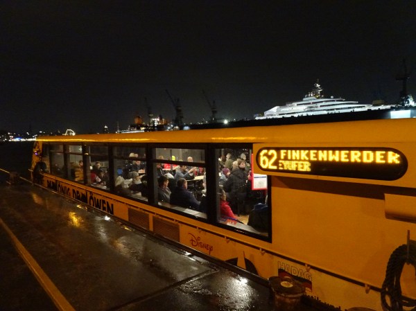 Seara am mers la stația Landungsbrucken de unde se pot lua vaporașele pe râul Elba. Am luat de acolo vaporul 62 care face fix turul portului și apoi se întoarce în centru. Plimbarea a durat cam o oră și așa am putut vedea imensitatea care este portul naval Hamburg.