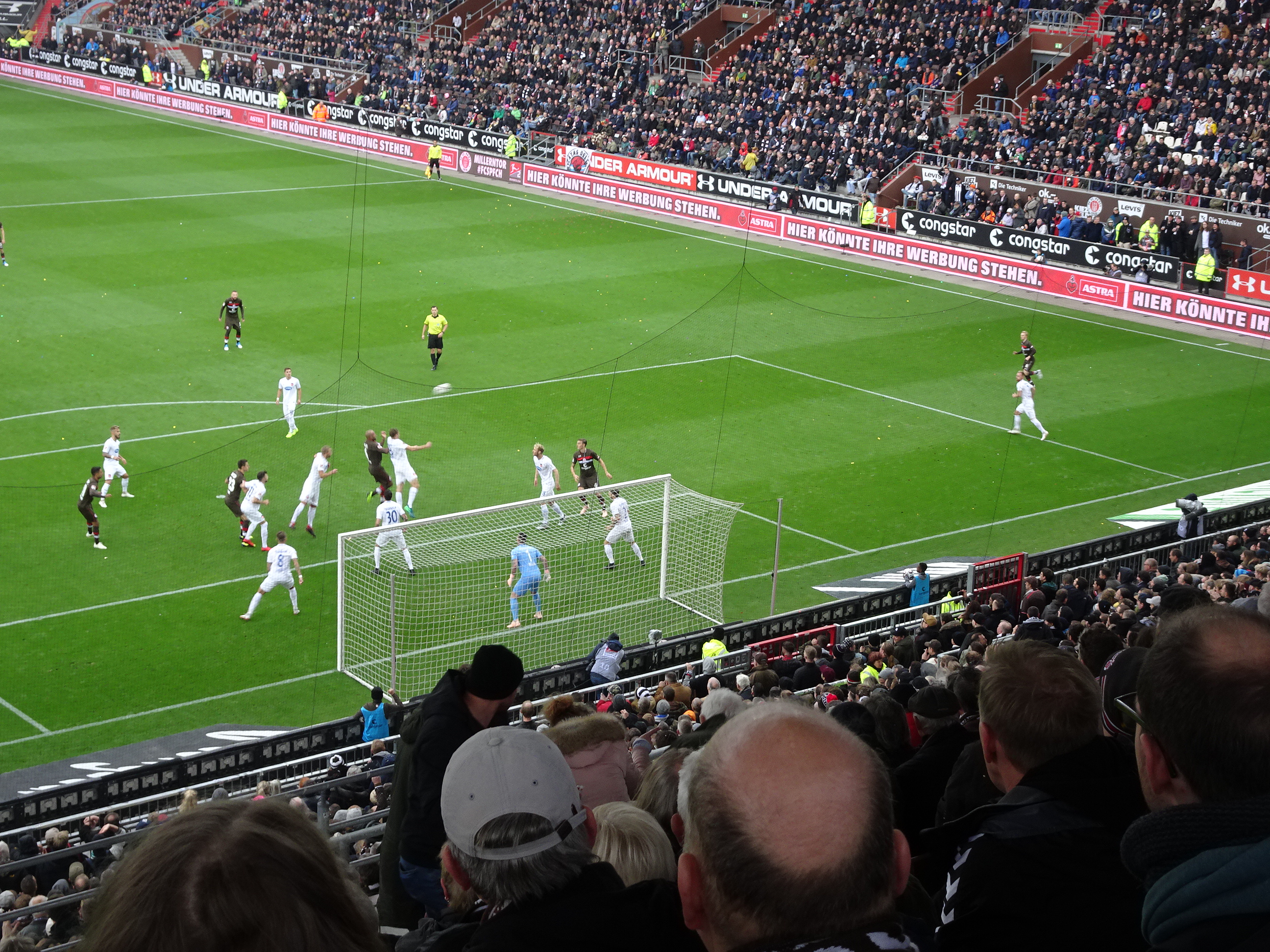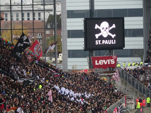 St. Pauli joacă în 2.Bundesliga, liga secundă germană iar sezonul acesta se luptă pentru promovare chiar cu rivala de moarte SV Hamburg. Am asistat la un meci oarecare, cu o echipă de mijlocul clasamentului, dar și așa meciul s-a jucat cu casa închisă, la fel ca mai toate meciurile mult iubitei echipe St. Pauli. Asistență de 30.000 de spectatori la un meci oarecare din liga a 2-a! Cum am intrat pe stadion și am înțeles de ce e așa mereu – ți se face pielea de găină când ii asculți pe fanii nebuni: