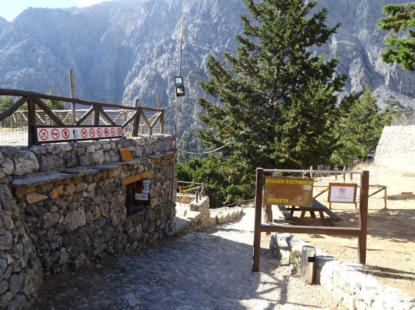 La Omalos am parcat mașina chiar la intrarea pe traseu. Ne-am pregătit bagajele cu strictul necesar (apă, o gustare și cremă de soare) și la ora 10 am pornit spre cheile Samariei.