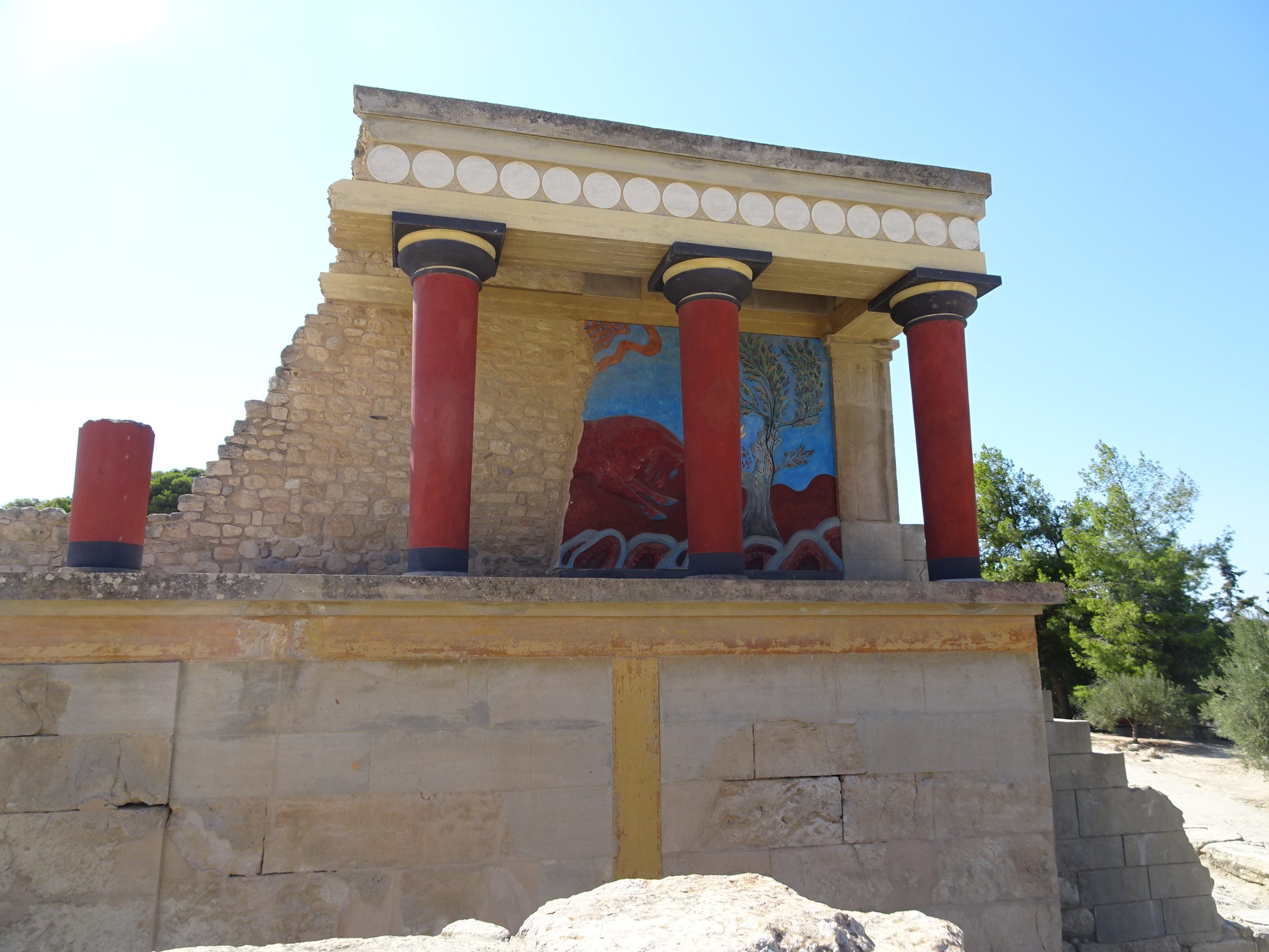 Pentru că mai aveam timp arhisuficient până seara am mai făcut un ocol către Knossos, la 5 kilometri de Heraklion. Acolo se află ruinele palatului Minos sau locul unde conform legendei trăia minotaurul. Complexul arheologic este extraordinar de bine conservat, excavările aducând la lumină un întreg oraș. Palatul datează din mileniul 2 i.e.n iar Knossos este supranumit cel mai vechi oraș al Europei.