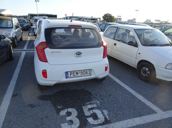 Mai târziu am sosit la aeroportul Heraklion, aflat la doar 5 kilometri de oraș. Am lăsat mașina în parcarea aeroportului și cheile la angajații parcării, așa cum discutasem cu cei de la car rental.