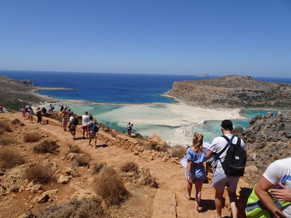 După vreo 15 minute de mers se ajunge la „View point”, locul de unde se vede plaja Balos în toată splendoarea sa.