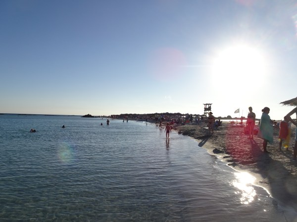 Ne-am instalat în mijlocul plajei foarte aproape de apă și am mers repede în mare să ne răcorim.
