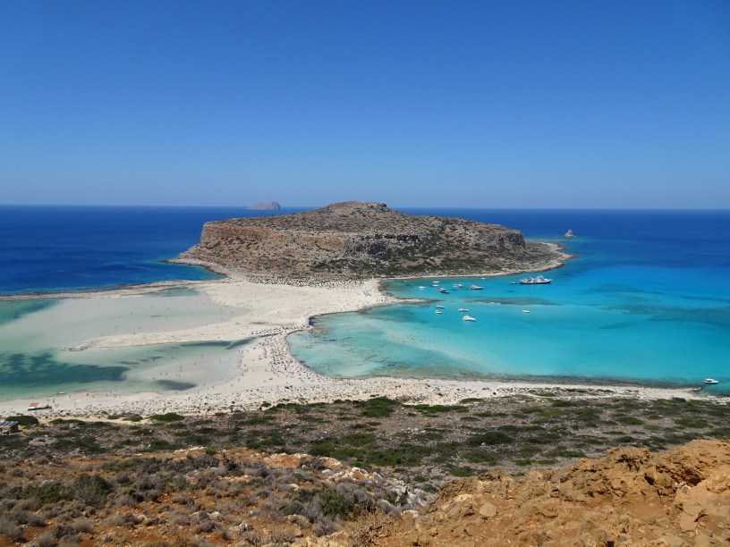 Balos este plaja aceea care apare în cele mai multe vederi cu Creta. O limbă de nisip alb înconjurată de o lagună turcoaz splendidă. La Balos nu se ajunge ușor. Se pot face croaziere de o zi cu plecare din Kissamos, ce includ și o oprire pe insula piraților, Gramavousa și un tur al golfului. Noi nu aveam timp (și nici chef) de o croazieră și am fi preferat să mergem cu mașina.