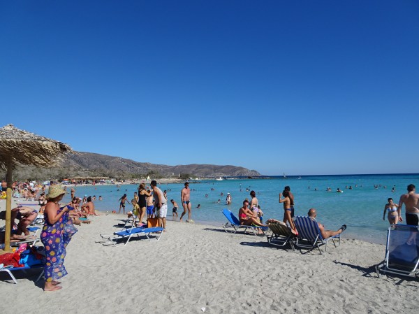 După o oră de condus pe un drum de munte, trecând prin mai multe sate pitorești și un peisaj montan splendid am sosit la Elafonissi. Am ajuns pe la 4 după amiaza și am avut mai multe avantaje: în primul rând temperatura devenise suportabilă, nu am prins trafic (poate fi foarte aglomerat mai ales dimineața când ajung acolo majoritatea turiștilor) și mai mult am găsit locuri de parcare la discreție (pentru că cei veniți dimineața începuseră deja să plece).