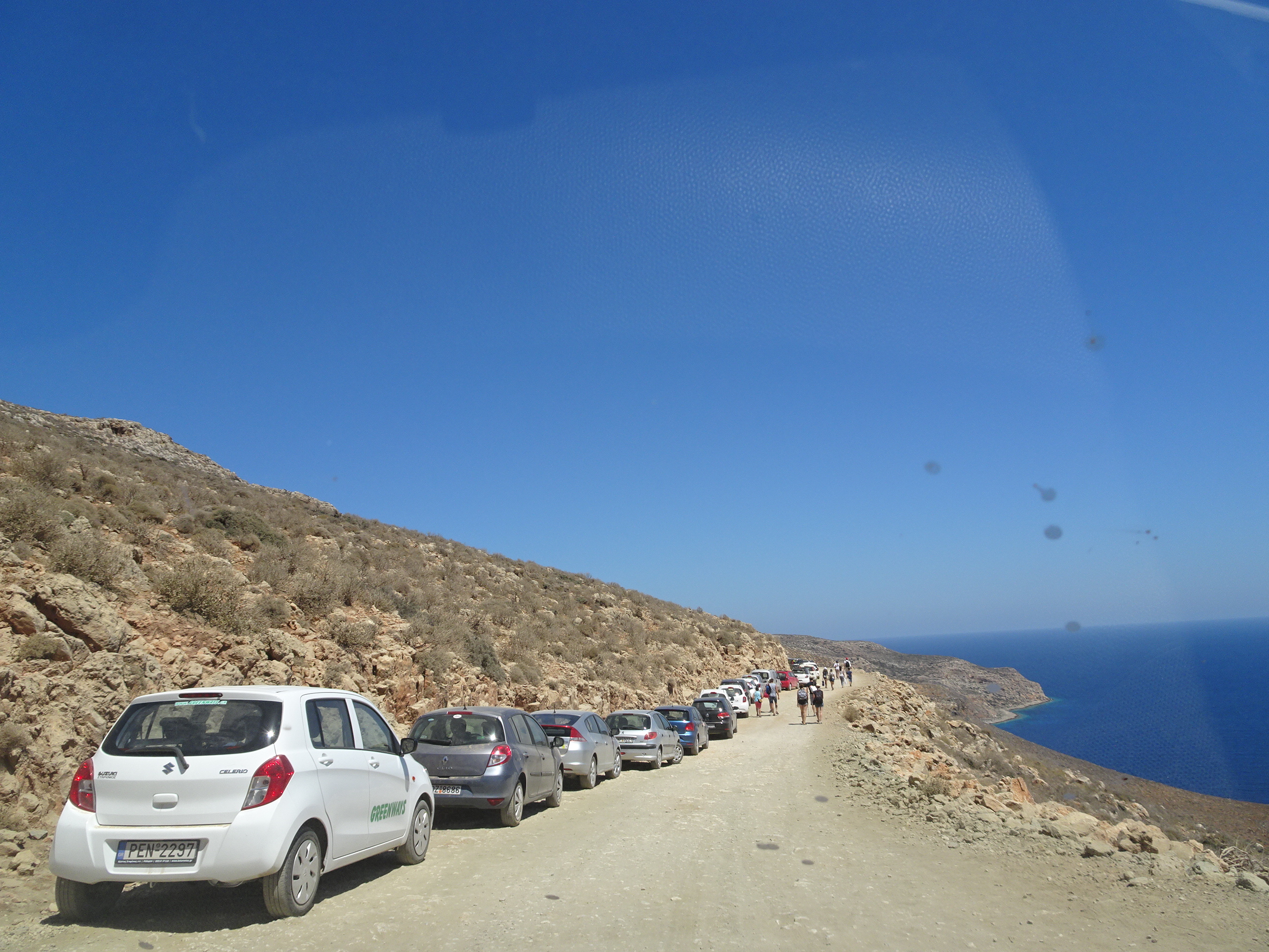 Am făcut în total cam jumătate de oră până aproape de Balos. Când mai aveam încă kilometru au apărut mașinile parcate la marginea șoselei. Nu am oprit ci am continuat până la parcarea mare unde mai erau încă locuri disponibile la ora prânzului.