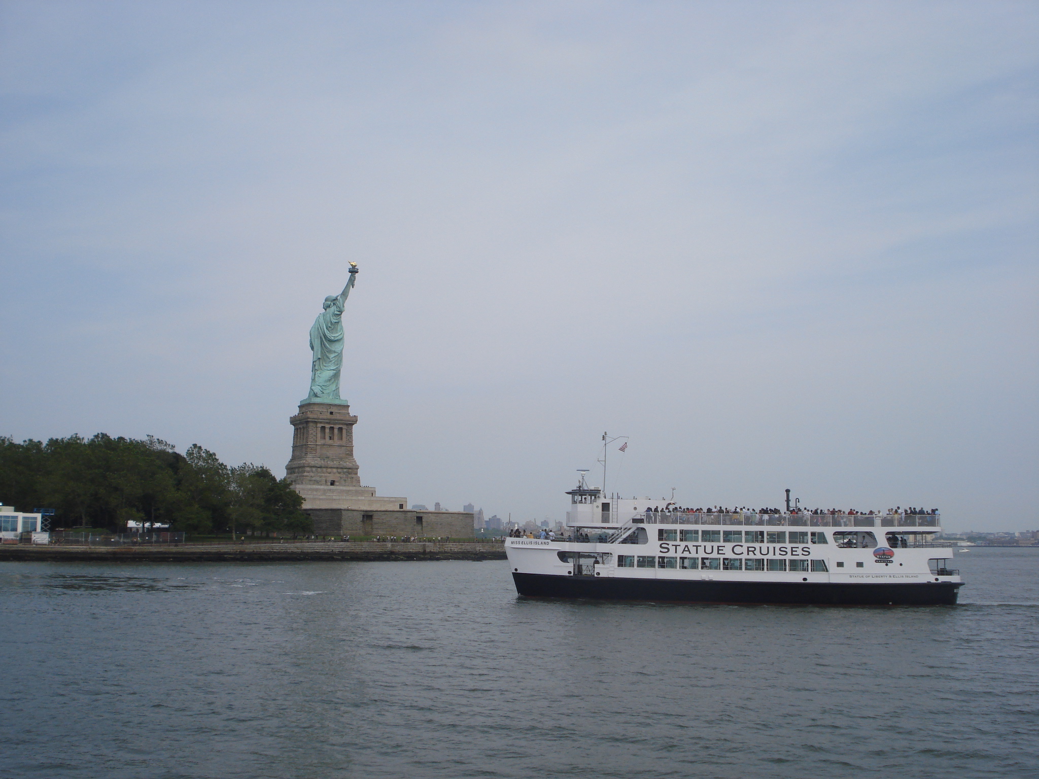 Am fi putut să ne dăm jos de pe vapor dar pe Liberty Island era o aglomerație fabuloasă de turiști și am preferat să rămânem pe vapor. Oricum, se putea merge doar la soclul statuii. Pentru a urca până în vârf, pe flacără este necesar un bilet care se rezervă cu multe săptămâni în avans.