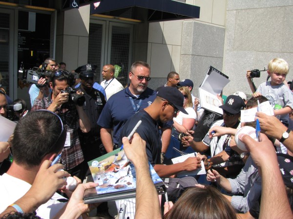 Am mers la un meci al Yankees cu un prieten american. Acesta fiind mare fan al echipei ne-a dus la stadion devreme pentru a participa la sesiunea de autografe pentru fani.