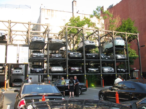 Locurile de parcare din Manhattan sunt foarte puține. Astfel au apărut multe asemenea parcări etajate.
