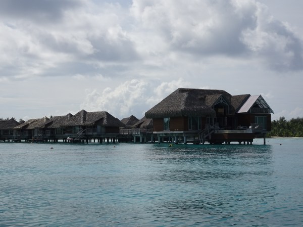 Trecând pe lângă resorturile luxoase am aflat informații care mai de care mai uluitoare: aici o cameră costă 10.000 de euro pe noapte, aici „doar” 5000, acolo a stat Obama acum două săptămâni, dincolo au fost în luna de miere niște vedete de la Hollywood…. Cele mai ieftine vile plutitoare costă 500-1000 pe noapte. Bungalow-urile de pe apă arată splendid, dar nu aș da asemenea bani pe cazare niciodată.