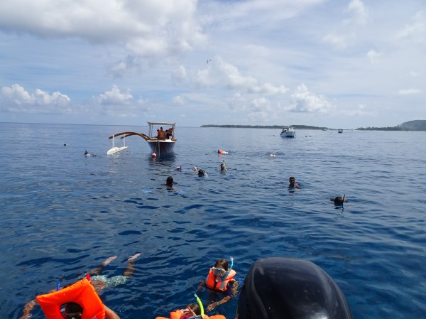 De la ponton ne-am îmbarcat pe o canoe tradițională ca aspect, dar dotată cu echipamente moderne și un motor puternic. Ni s-a spus că suntem norocoși să mergem în excursie cu Maui, un ghid faimos pe insulă, pe care chiar unii turiști îl ceruseră special.