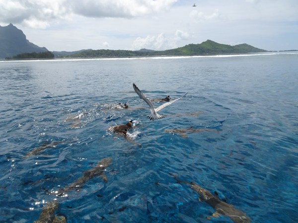 Am ancorat într-o zonă cu apă foarte puțin adâncă unde se pot vedea o mulțime de rechini mici și diavoli de mare.