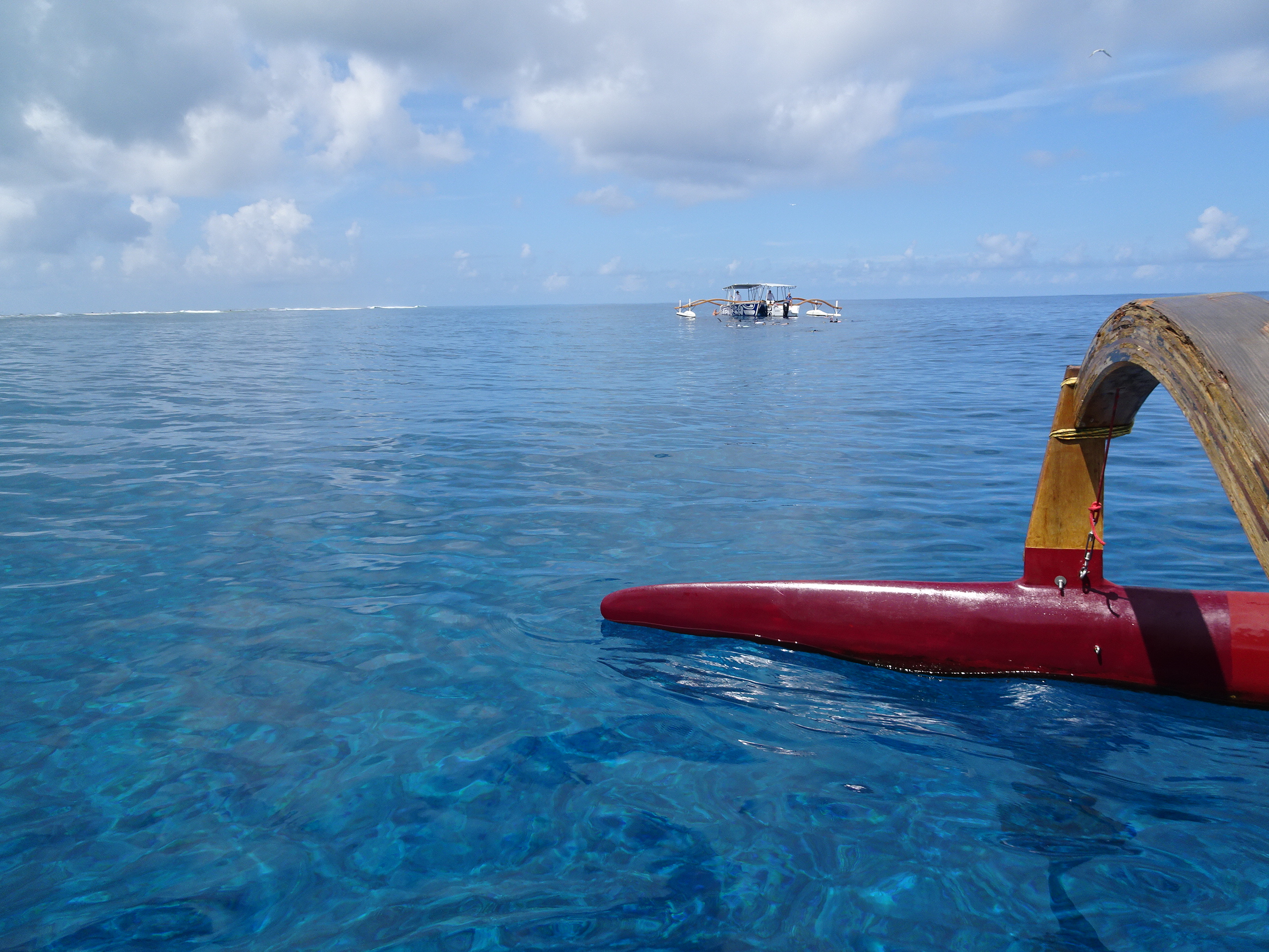 De la ponton ne-am îmbarcat pe o canoe tradițională ca aspect, dar dotată cu echipamente moderne și un motor puternic. Ni s-a spus că suntem norocoși să mergem în excursie cu Maui, un ghid faimos pe insulă, pe care chiar unii turiști îl ceruseră special.