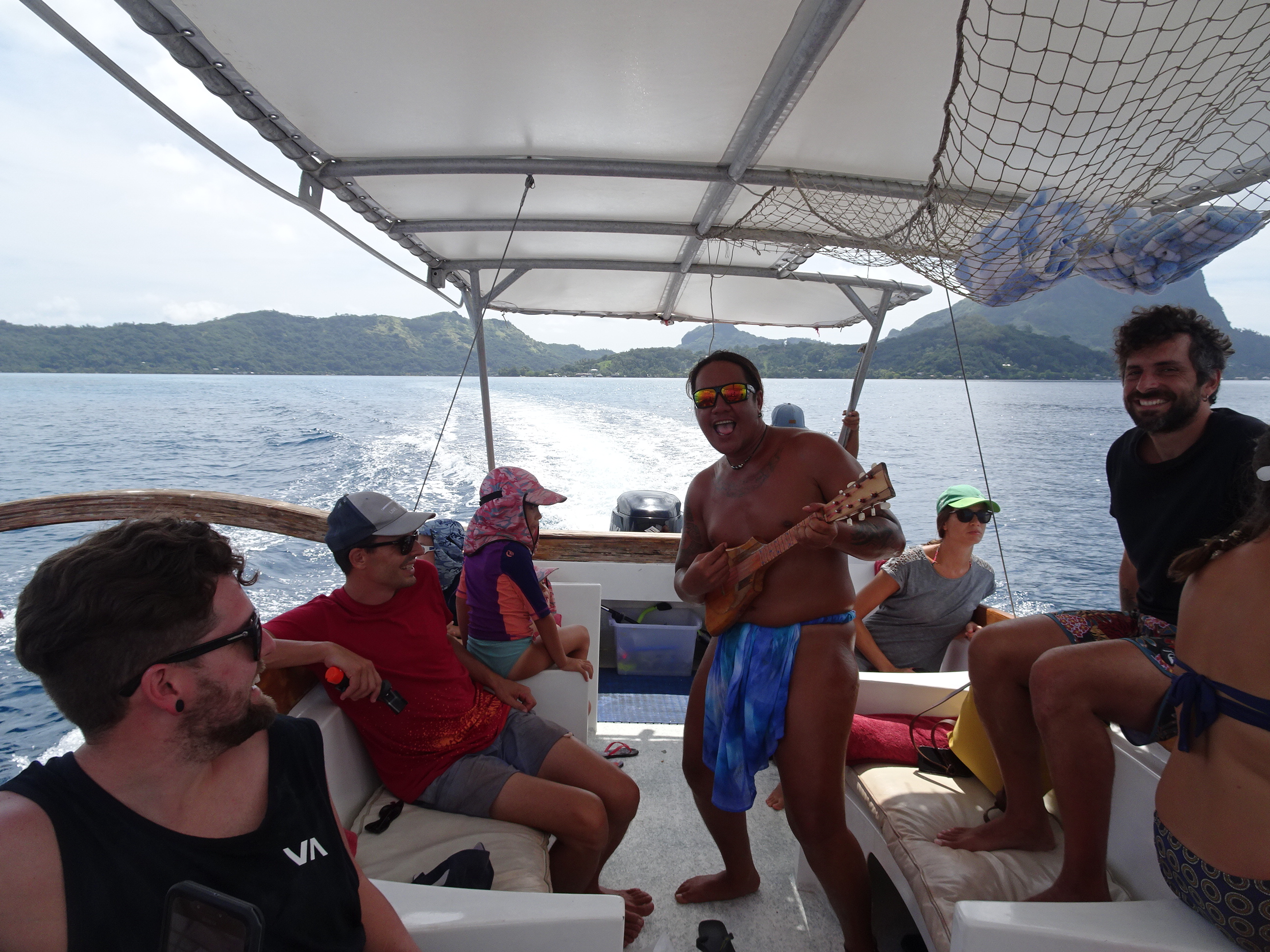 Maui este cel mai cunoscut și apreciat ghid din Bora Bora, ușor de recunoscut după ținuta sumară tradițională. Are o formație alături de care cantă seara într-un bar de pe insulă iar toate tururile sale sunt acompaniate de muzică live.