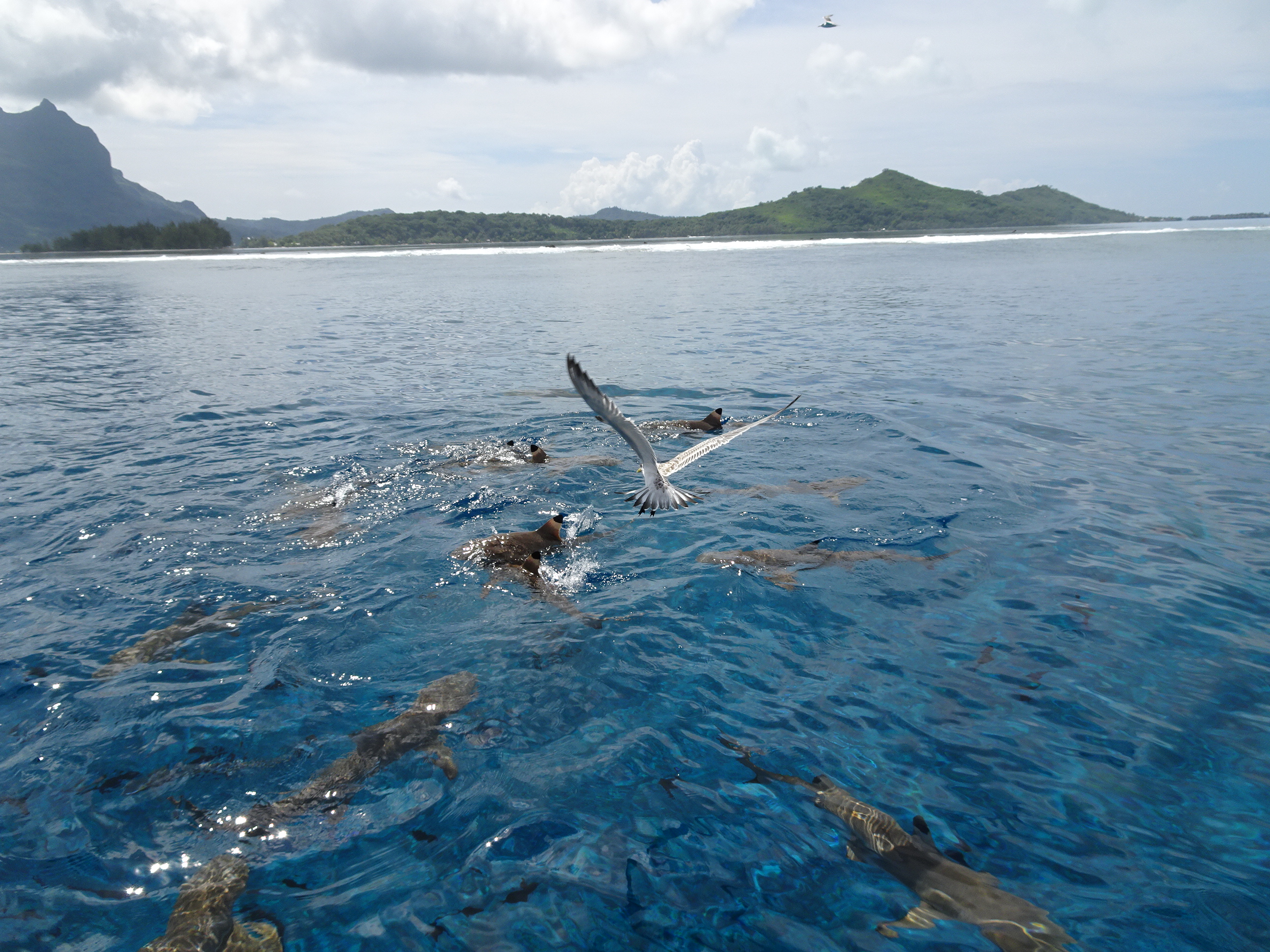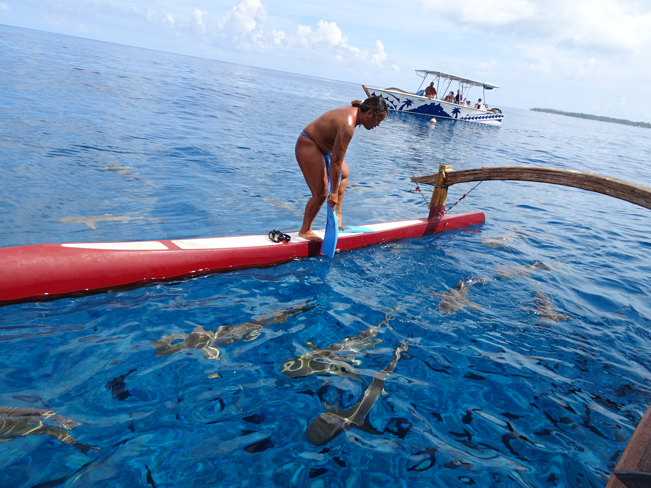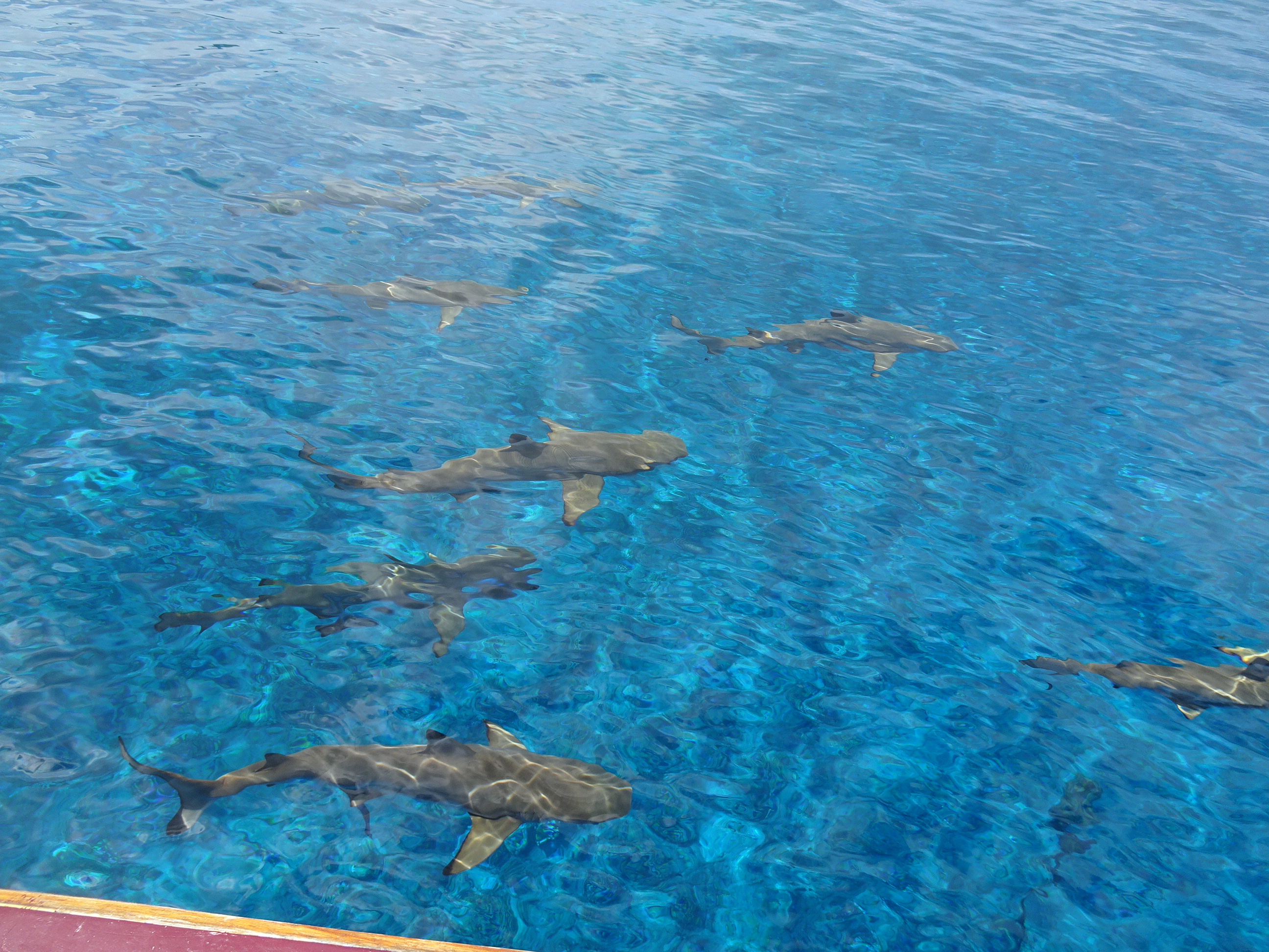 Aici am preferat să rămân pe barcă. Nu neapărat de frica rechinilor ci mai degrabă fiindcă nu știu să înot bine, iar 20 de metri adâncime e prea mult pentru mine. N-am pierdut mare lucru pentru că am putut vedea rechinii foarte bine de sus. Cei mici ieșeau chiar la suprafață și am văzut chiar doi rechini uriași mai la fund.
