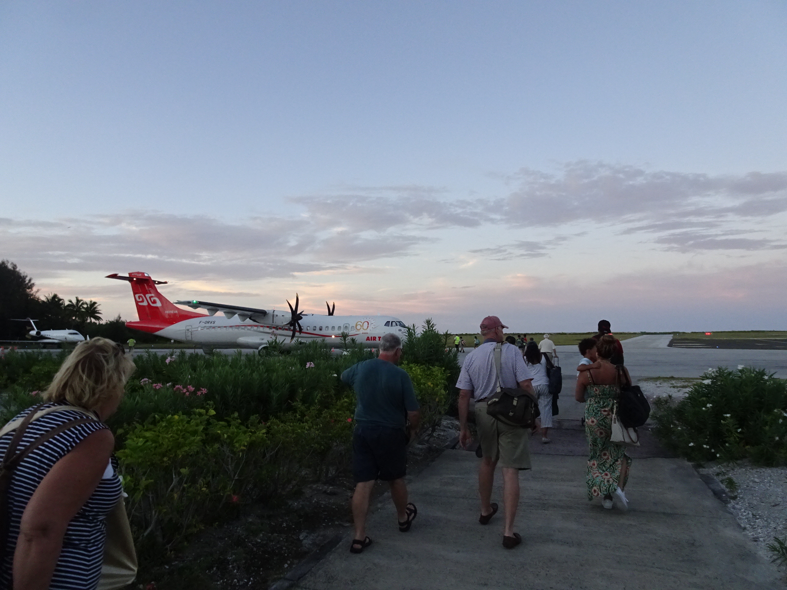 La aeroportul Bora Bora. Am făcut check-in iar apoi am privit un nou apus pe plaja din apropiere.