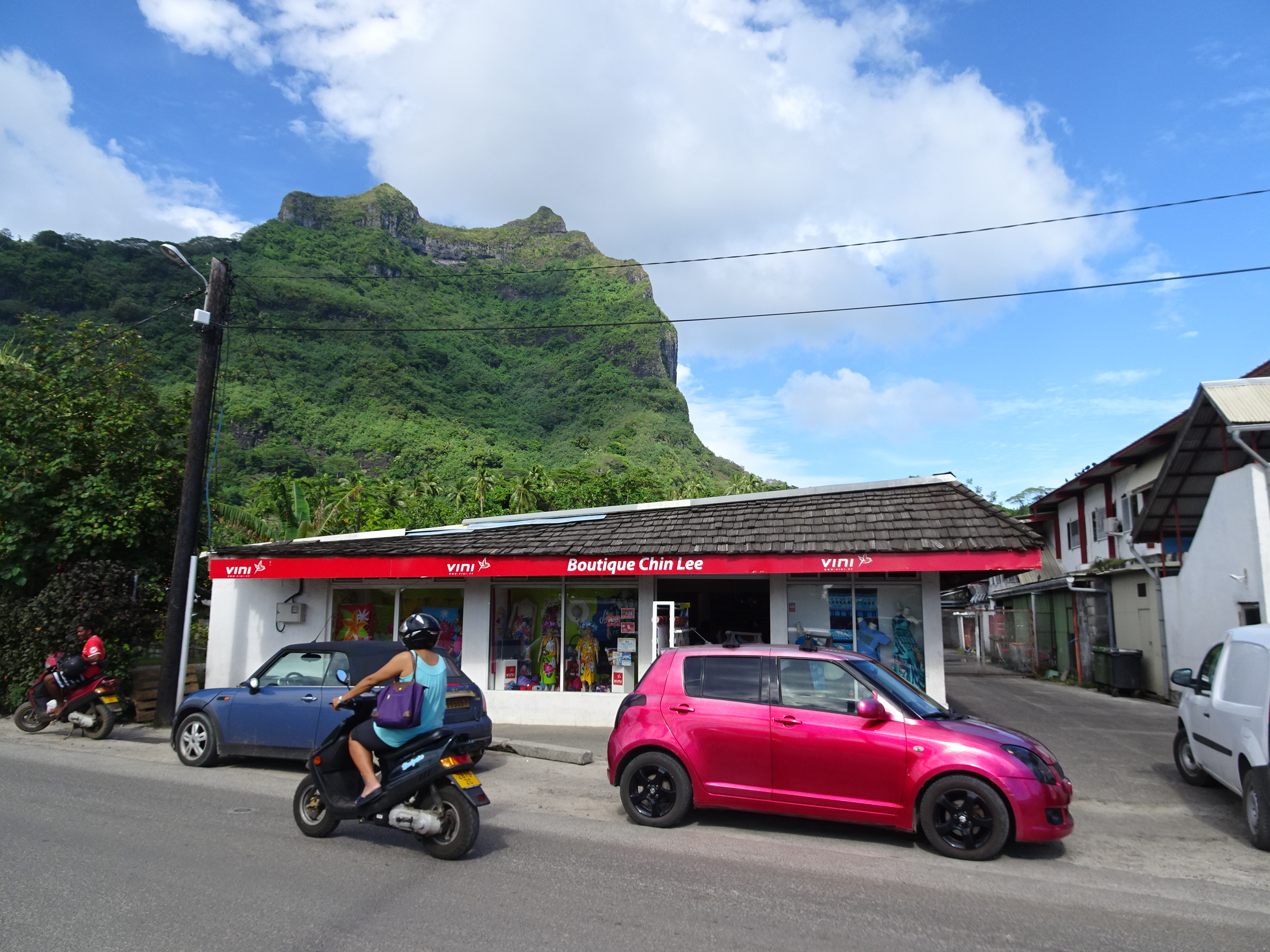 Înapoi la civilizație, am trecut pe la principalul supermarket din Bora Bora pentru ultimele suveniruri de pe insulă. Produsele renumite sunt perlele de Tahiti sau colierele din scoici, uleiurile și parfumurile de Monoi sau Tiare sau produsele medicinale din plante rare.