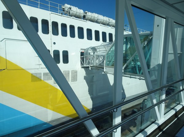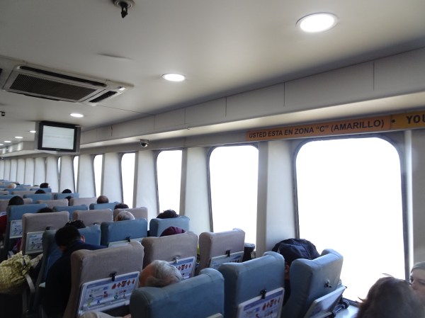 Sunt 3 companii mari care fac legătura rapidă dintre Buenos Aires și Colonia del Sacramento sau mai departe la Montevideo în Uruguay. Dintre ele rezervasem bilete online la Buquebus pentru că mi-a convenit orarul lor cel mai mult. Tariful dus-întors: 50 de dolari americani. Totul se desfășoară la fel ca pe un aeroport. După o scurtă așteptare la coadă la check-in am plecat mai departe spre controlul de securitate și la îmbarcare.