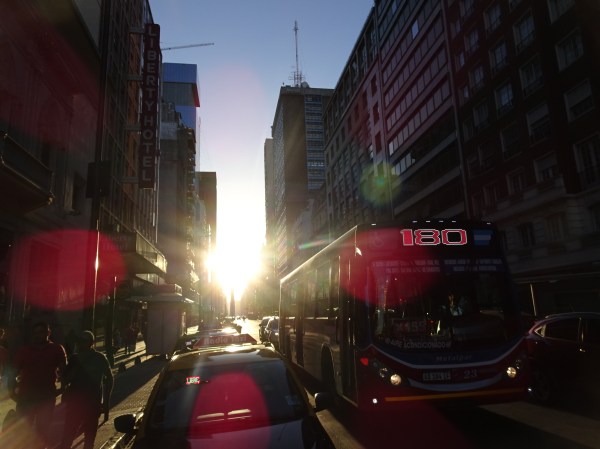 Se apropia apusul iar soarele se vedea fix pe direcția străzilor ce se intersectează cu Calle Florida.