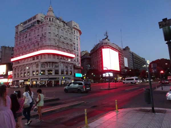 Avenida 9 de Julio este cel mai aglomerat bulevard din Buenos Aires. Acolo după lăsarea întunericului am admirat orașul luminat de la monumentul Obelisco.