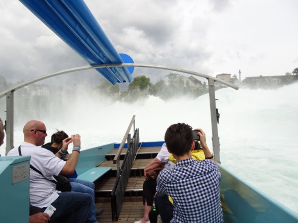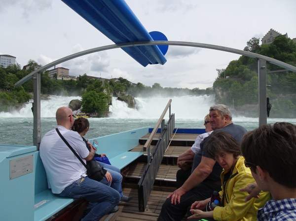 Am făcut la Rheinfall o plimbare cu barca până aproape de cascadă. Există mai multe variante de circuit (unele includ o oprire în centrul cascadei). Noi am preferat turul simplu de 30 de minute, iar un bilet a costat 7 franci.
