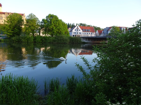 După cină am făcut o plimbare pe malul Dunării până la castel. Aceasta este mai degrabă aici un râuleț decât fluviul vast pe care îl cunoaștem noi, Munții Pădurea Neagră de unde izvorăște fiind destul de aproape. Nu am vizitat interiorul castelului, dar vederea sa ne-a fascinat. La asfințit este momentul perfect pentru a-l vedea, cu lumina aurie a soarelui pe clădire și reflexia sa perfectă pe Dunăre.