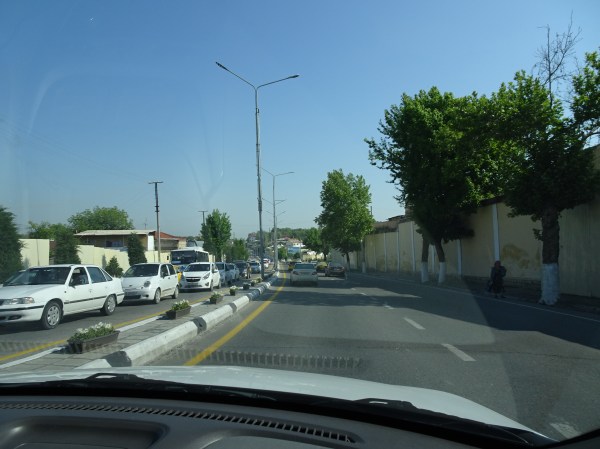 Bulevardul Tashkent este traversat la jumătate de șoseaua națională, iar pietonii pot trece pe deasupra pe un pod metalic. Aglomerația pe pod e mare pentru că pe partea opusă este un loc de mare interes pentru uzbeci…