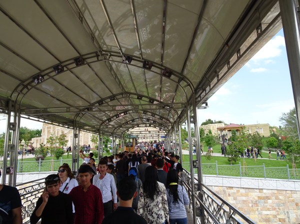 Am vizitat Registan-ul duminica, zi când mii de uzbeci vin și ei să își vizitezi capitala istorică. Nu a fost o alegere prea bună fiindcă am avut parte peste tot de aglomerație, iar când vine vorba de stat la cozi și de bune maniere în general, uzbecul de rând mai are de învățat..