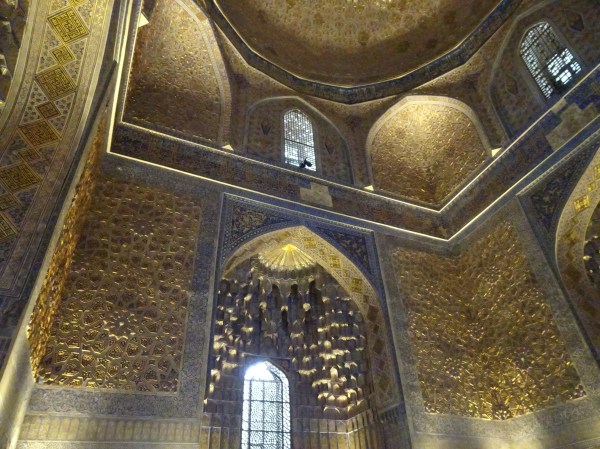 La Shah-i-Zinda, chiar am suferit de la aglomerație, pe scările înguste unde mii de turiști se înghesuiau să vadă mausoleele. Interioarele acestora sunt ce e drept, excepțional de frumoase, dar după vreo jumătate de oră de „călcat în picioare” am zis să ieșim mai repede.