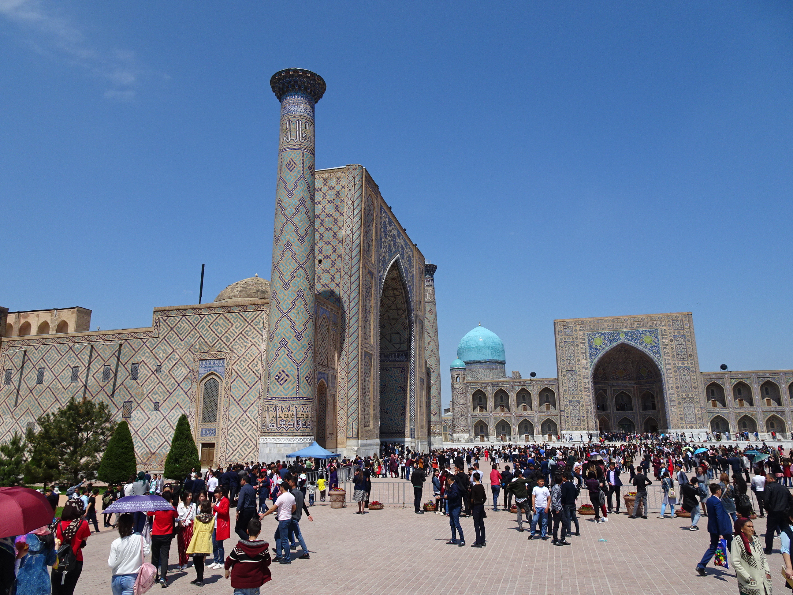 Când ajungi prima oară să vezi Registan ți se taie răsuflarea. Cele trei medrese alăturate (Ulug-Bei, Tilya-Kori și Sher-Dor) sunt de o frumusețe excepțională iar întreg ansamblul arhitectonic este uluitor.