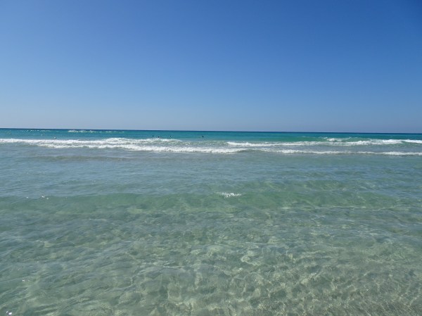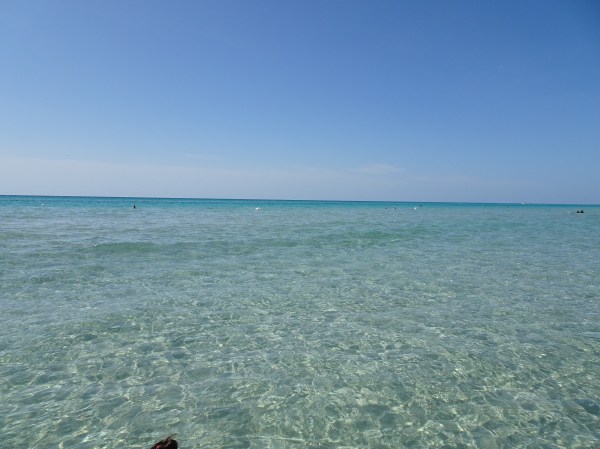 Afară dar și în mare erau 26 de grade. Vântul adia doar puțin. Apa era extraordinar de curată, cristalină iar nisipul alb fin. Se intra în mare lin și până ajungeai să baliză erau sute de metri. Ce mai, o plajă de vis