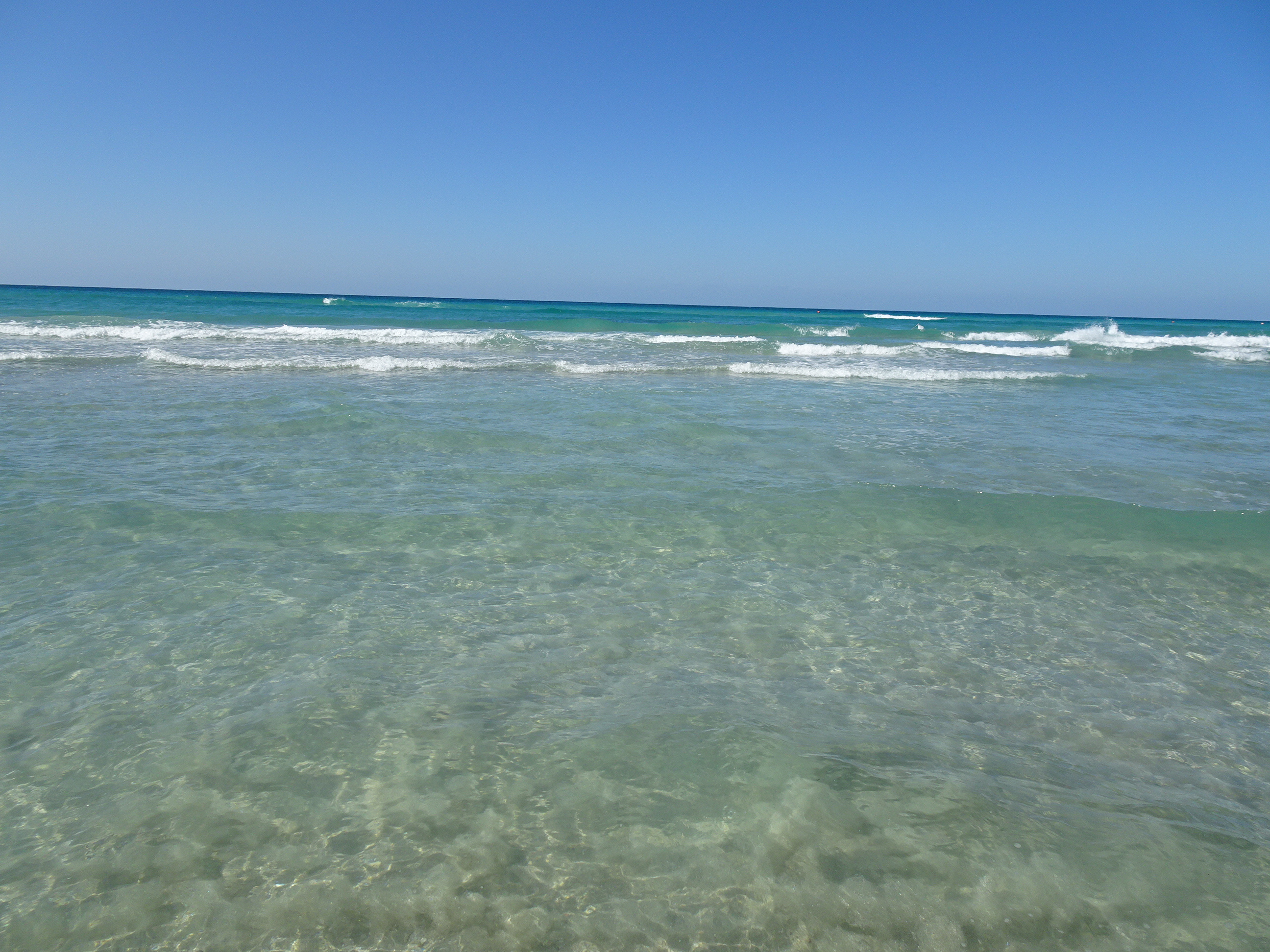 Afară dar și în mare erau 26 de grade. Vântul adia doar puțin. Apa era extraordinar de curată, cristalină iar nisipul alb fin. Se intra în mare lin și până ajungeai să baliză erau sute de metri. Ce mai, o plajă de vis