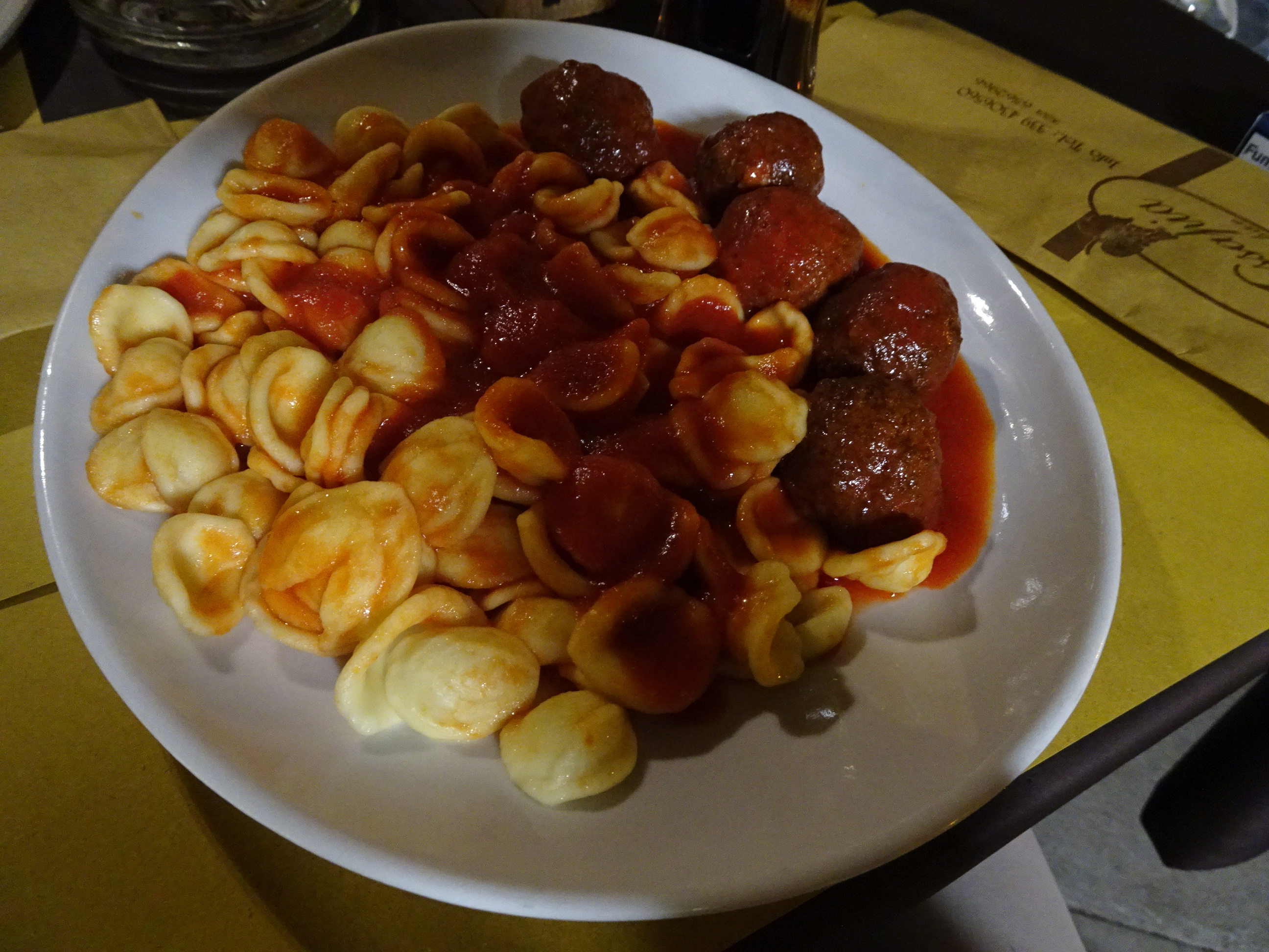 Cina la terasă cu mâncare specifică salentino: orecchiette e polpette
