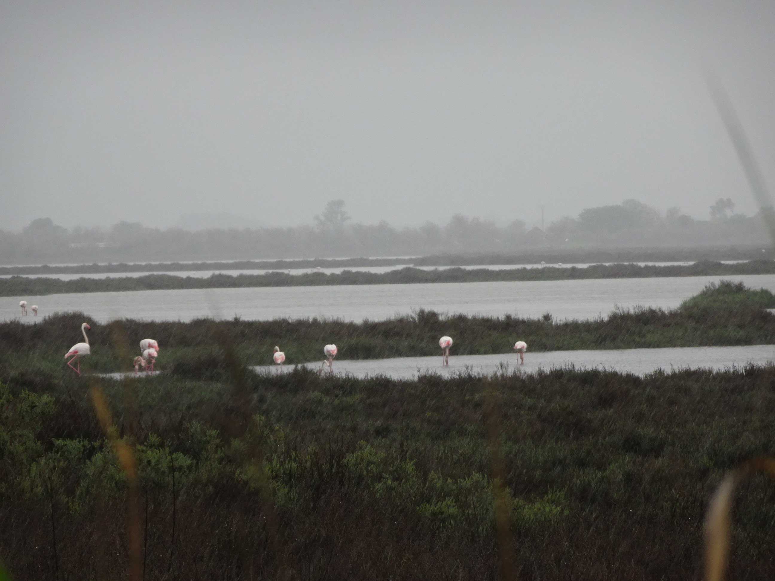 Camargues este un fel de Delta Dunării a Franței. Nu am putut opri din cauza vremii dar am admirat peisajul din mașină, inclusiv lacurile pline de flamingo roz
