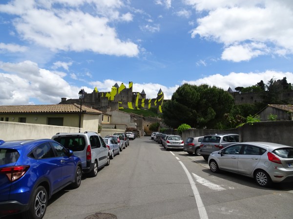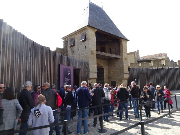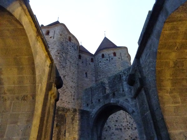 De când am ajuns prima oară seara la zidurile La Cité am fost impresionat. Fortăreața este imensă – nu am mai văzut ceva de dimensiuni comparabile nicăieri. Era luminată absolut superb. La porțile cetății sunt parcări vaste care pot adăposti miile de vizitatori zilnici. Seara a fost mai simplu cu găsirea unui loc (chiar dacă ora de parcare e scumpă). Mai departe, intrând pe poartă începe labirintul de alei interioare.
