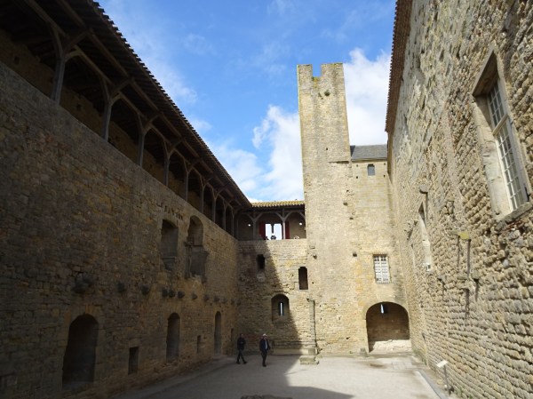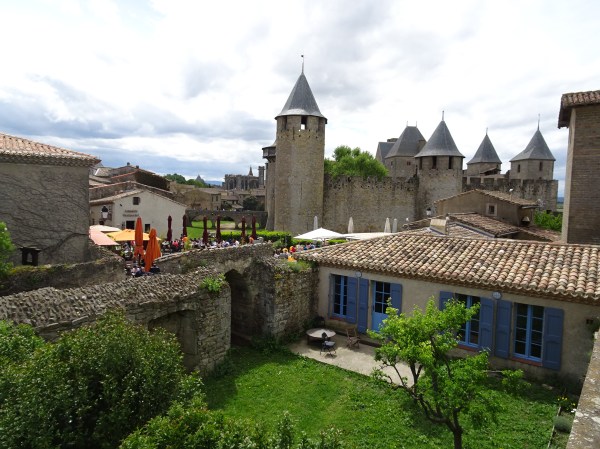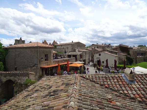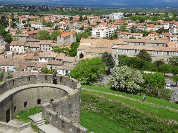 Am mers pe ziduri cam o oră trecând prin zeci de turnuri. Tot traseul a fost plin de priveliști grozave peste casele și bisericile din cetate, dar și peste orașul nou din vale și dealurile înconjurătoare. Am mai vizitat catedrala Saints Nazaire et Celse, amfiteatrul medieval transformat în sală de spectacole și primăria îmbrăcată complet în plante agățătoare.
