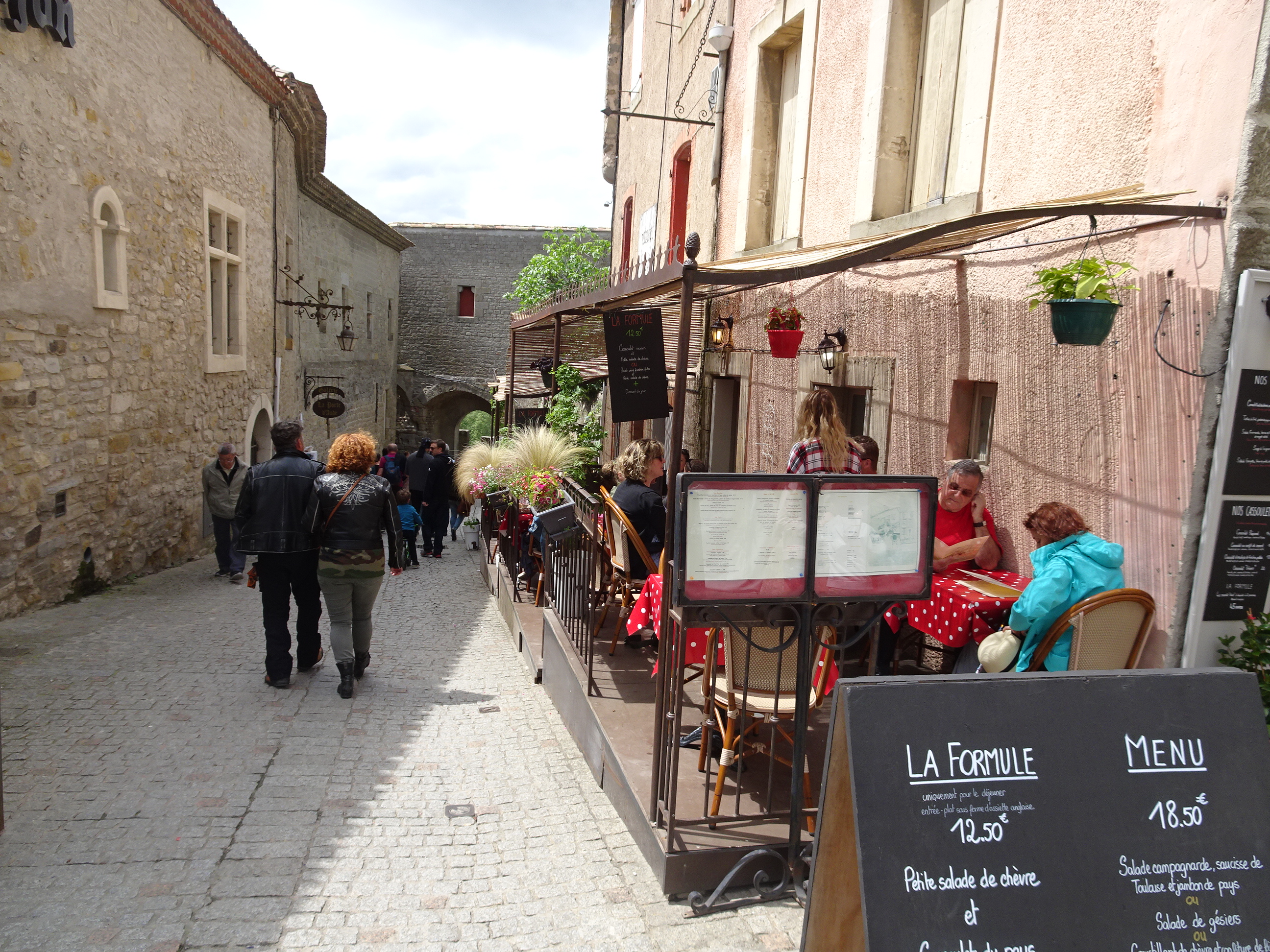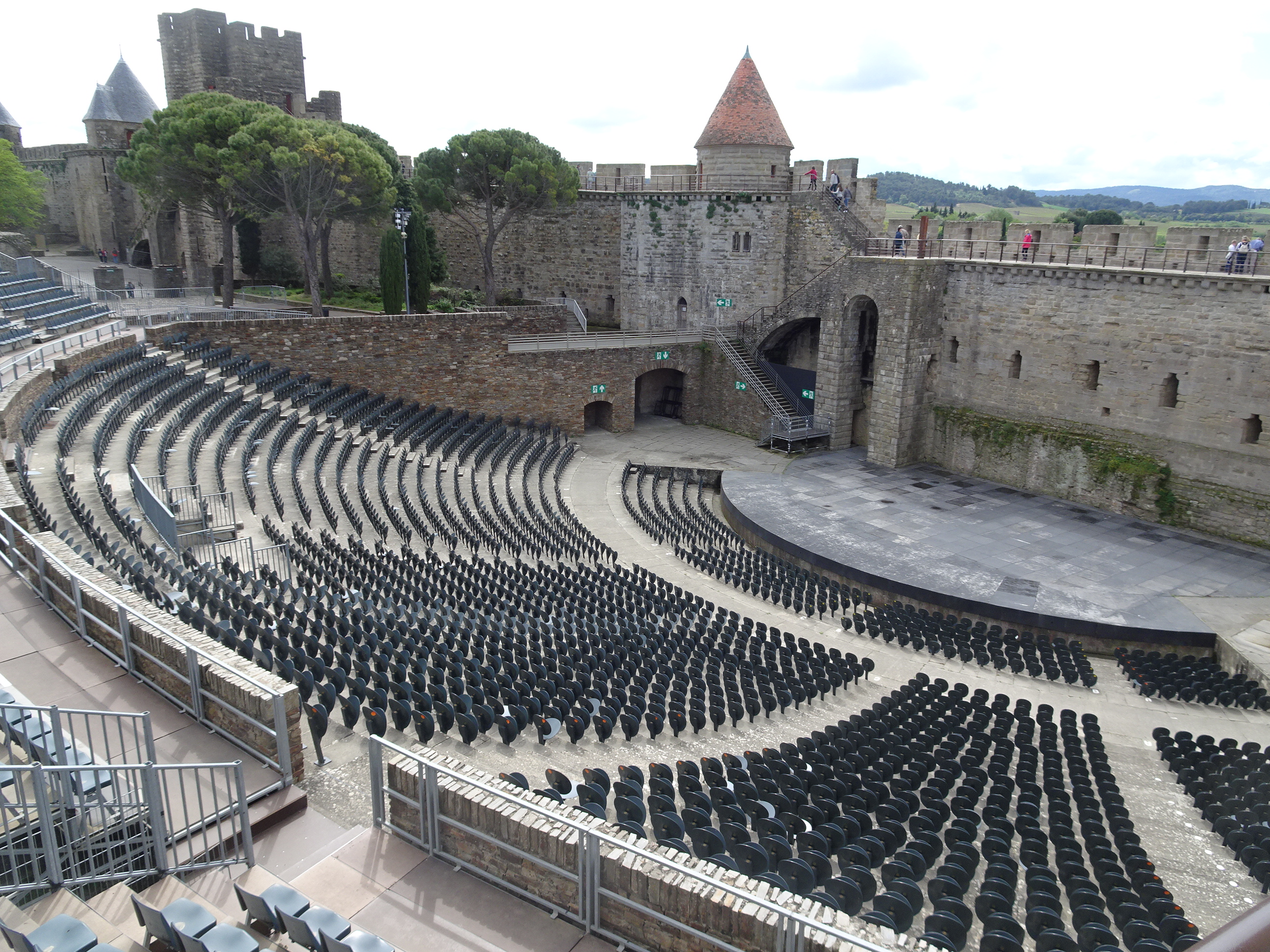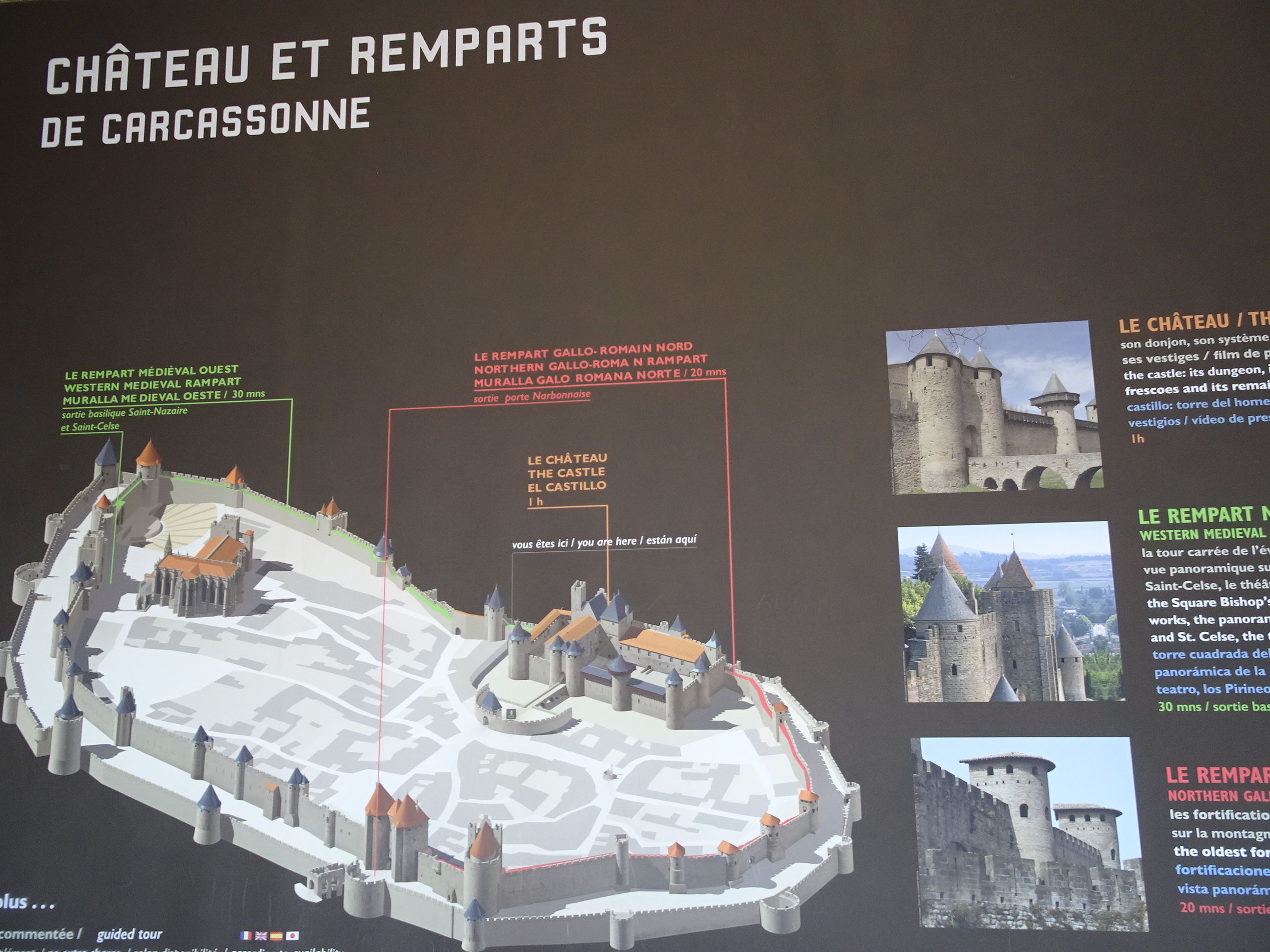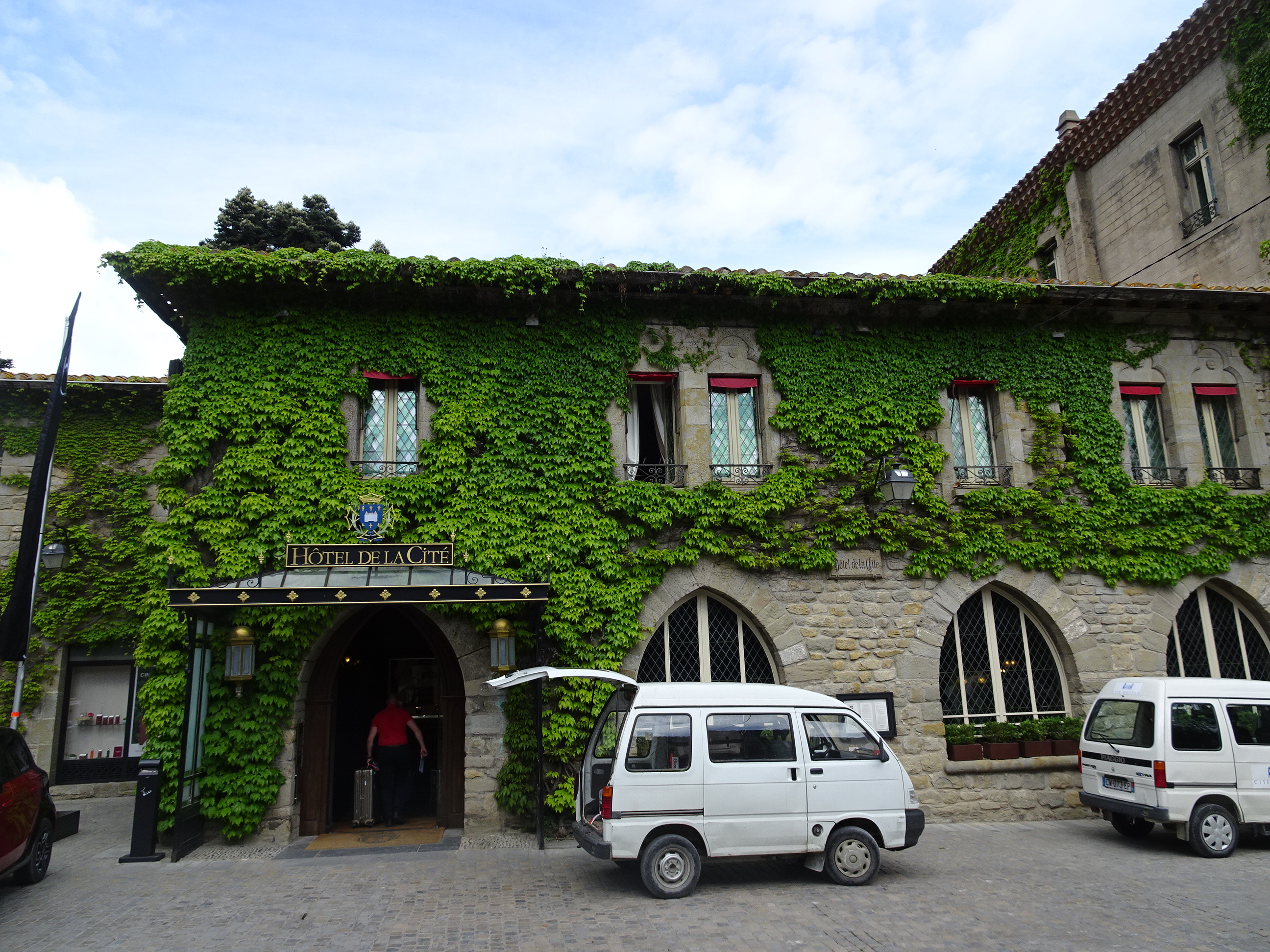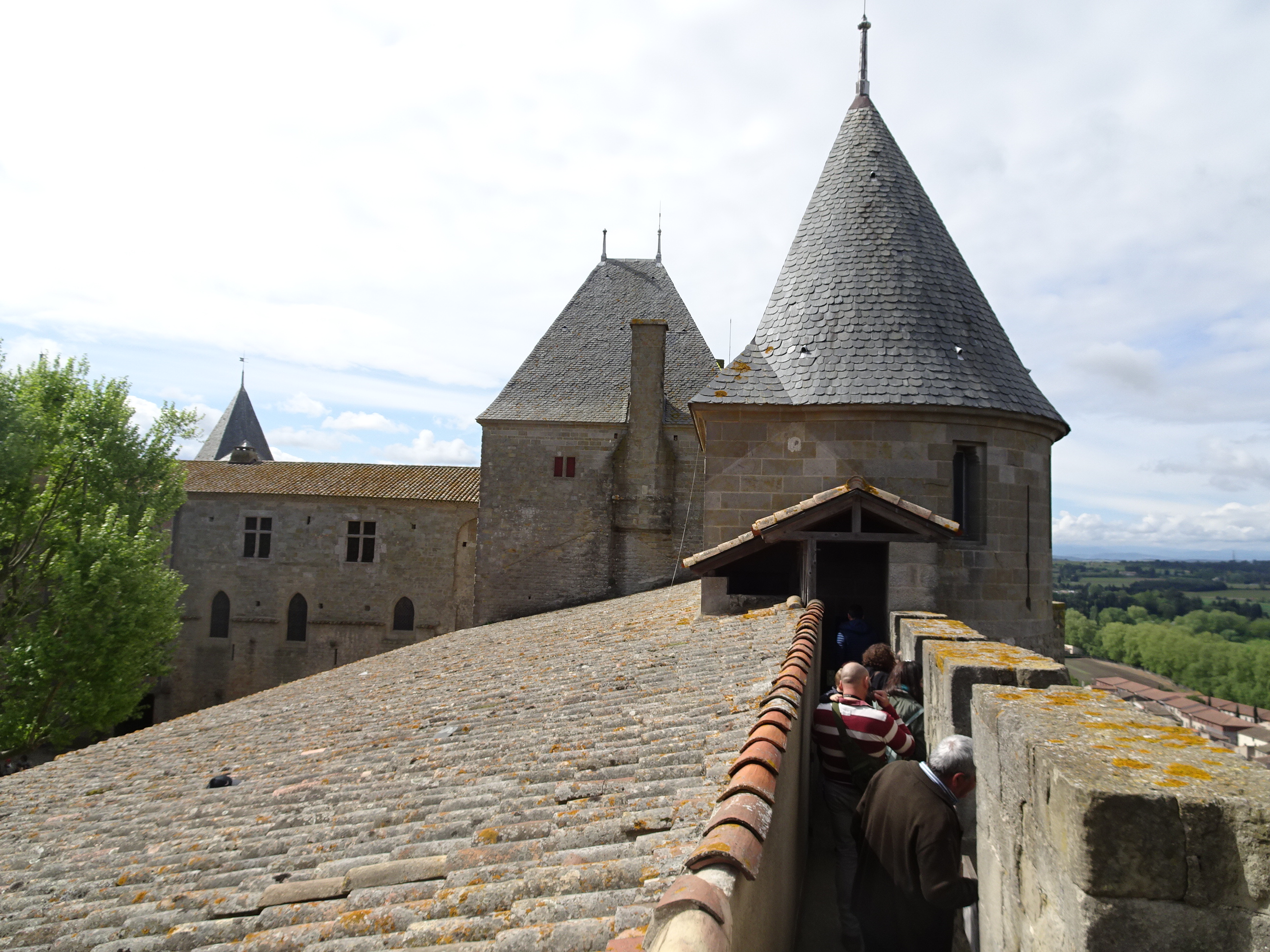 Am mers pe ziduri cam o oră trecând prin zeci de turnuri. Tot traseul a fost plin de priveliști grozave peste casele și bisericile din cetate, dar și peste orașul nou din vale și dealurile înconjurătoare. Am mai vizitat catedrala Saints Nazaire et Celse, amfiteatrul medieval transformat în sală de spectacole și primăria îmbrăcată complet în plante agățătoare.