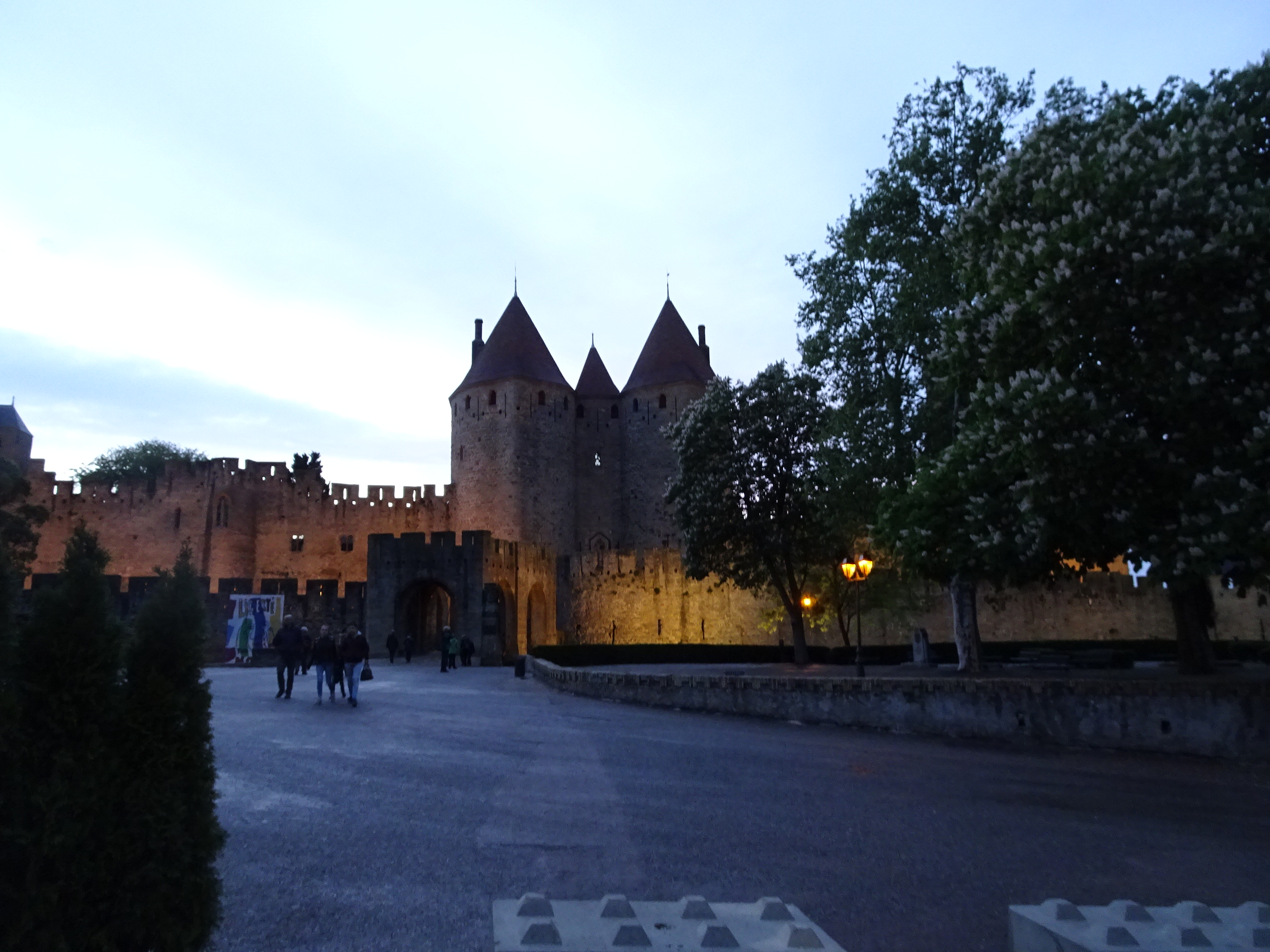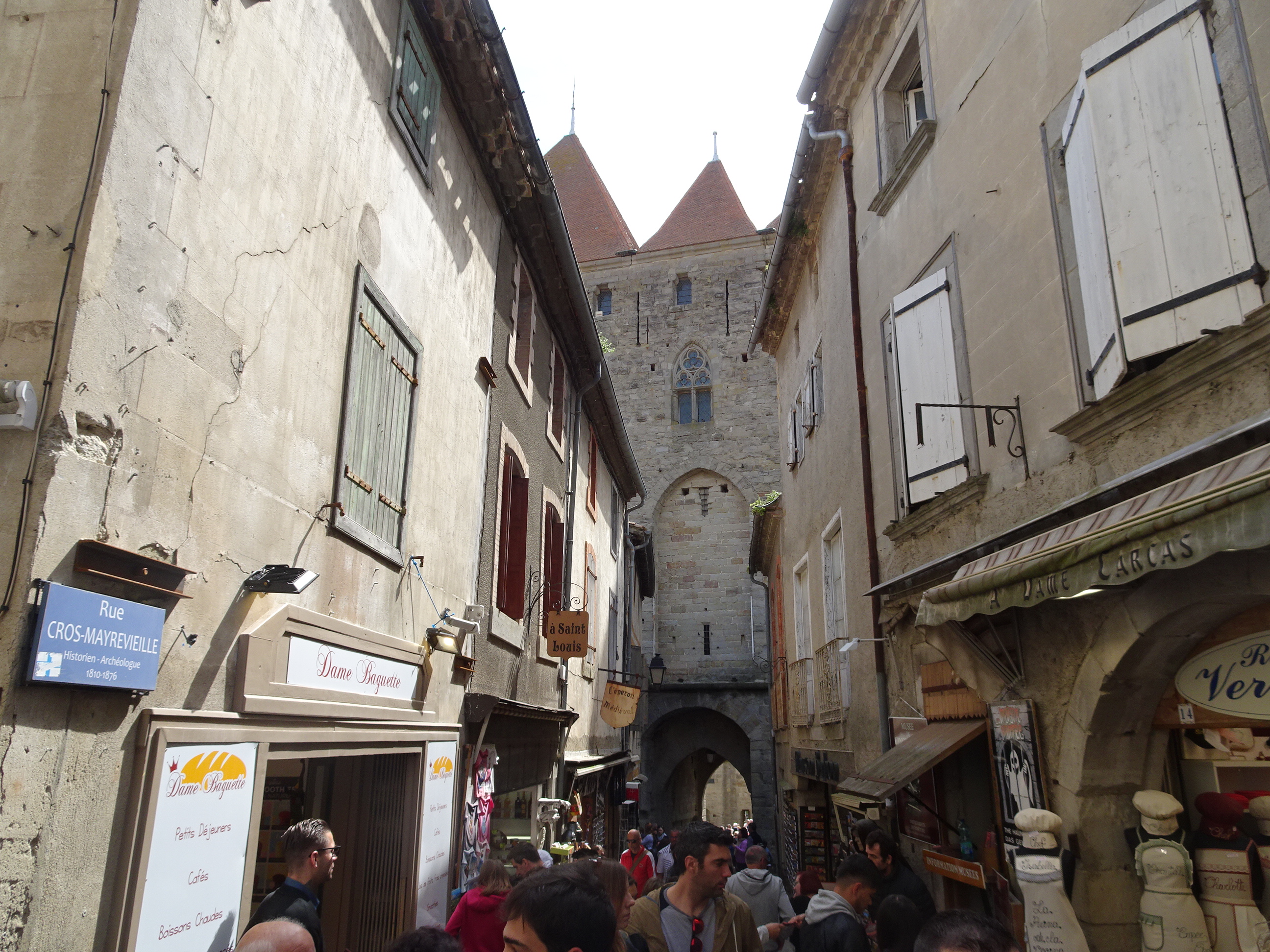 De când am ajuns prima oară seara la zidurile La Cité am fost impresionat. Fortăreața este imensă – nu am mai văzut ceva de dimensiuni comparabile nicăieri. Era luminată absolut superb. La porțile cetății sunt parcări vaste care pot adăposti miile de vizitatori zilnici. Seara a fost mai simplu cu găsirea unui loc (chiar dacă ora de parcare e scumpă). Mai departe, intrând pe poartă începe labirintul de alei interioare.