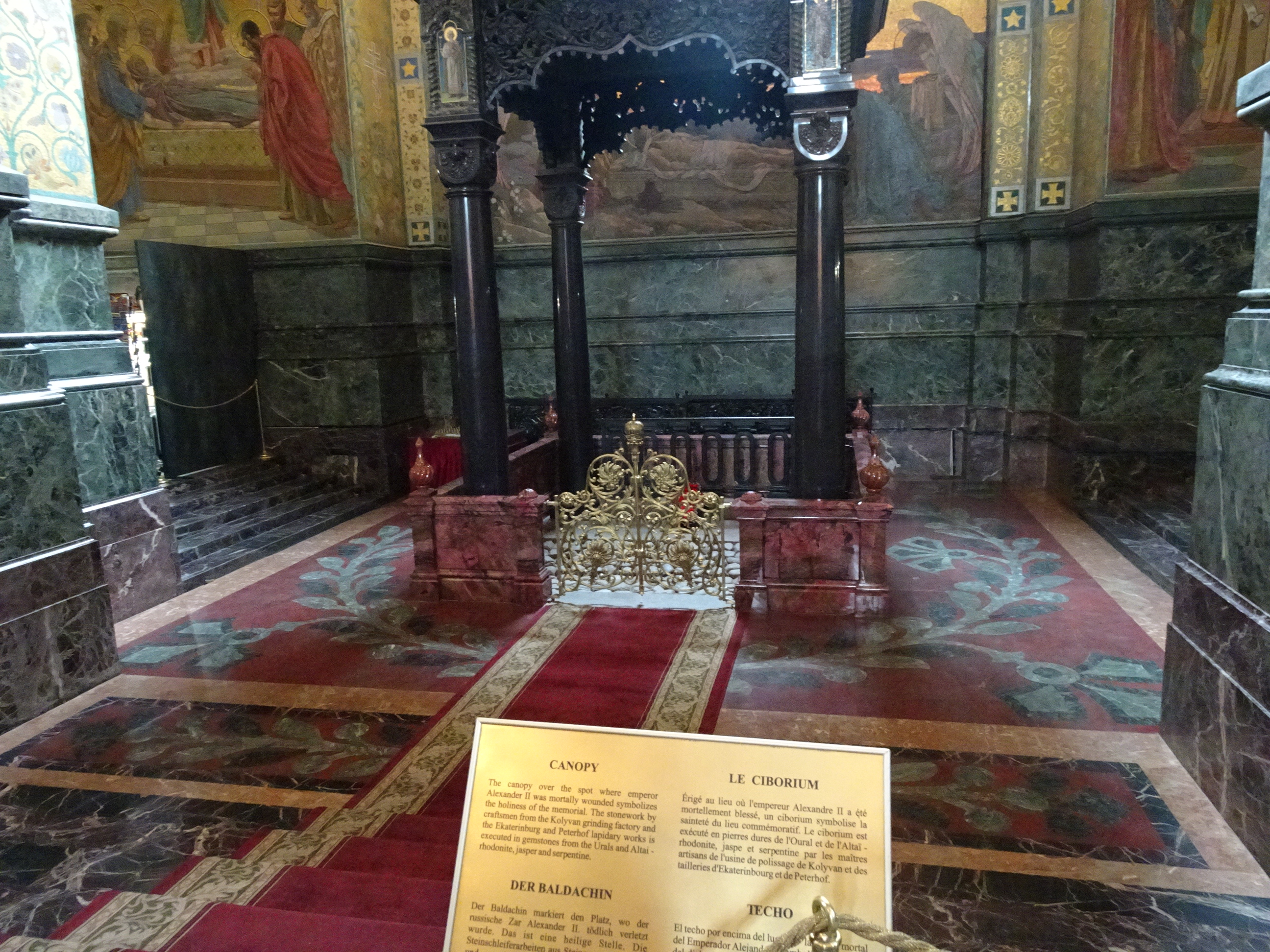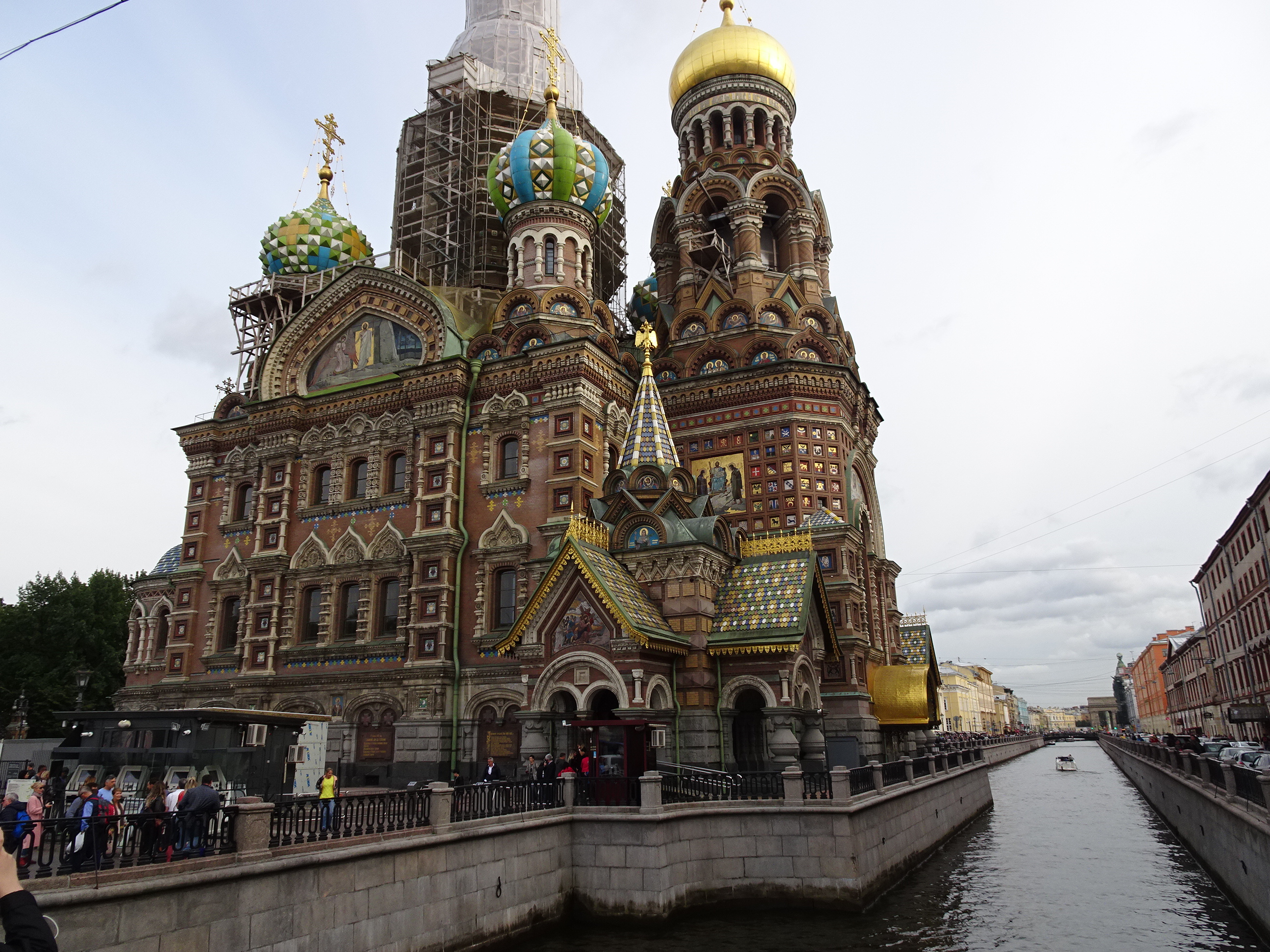 De la Kazan se ramifică unul din cele mai pitorești canale navigabile, pe malul căruia se află cea mai frumoasă biserică din Sankt Petersburg. Savior of Spilled Blood (Biserica sângelui vărsat ) este o adevărată capodoperă a ortodoxismului. Am prins biserică încă deschisă seara când am ajuns iar înainte de orele închiderii am putut-o vedea mai puțin aglomerată decât de obicei. Biserica este impresionantă la exterior, dar frescele și mozaicele dinăuntru te lasă cu gura căscată. Biserica este construită ca omagiu Țarului Alexandru II chiar pe locul unde acesta a fost asasinat de către revoluționari prin explozia unei bombe.