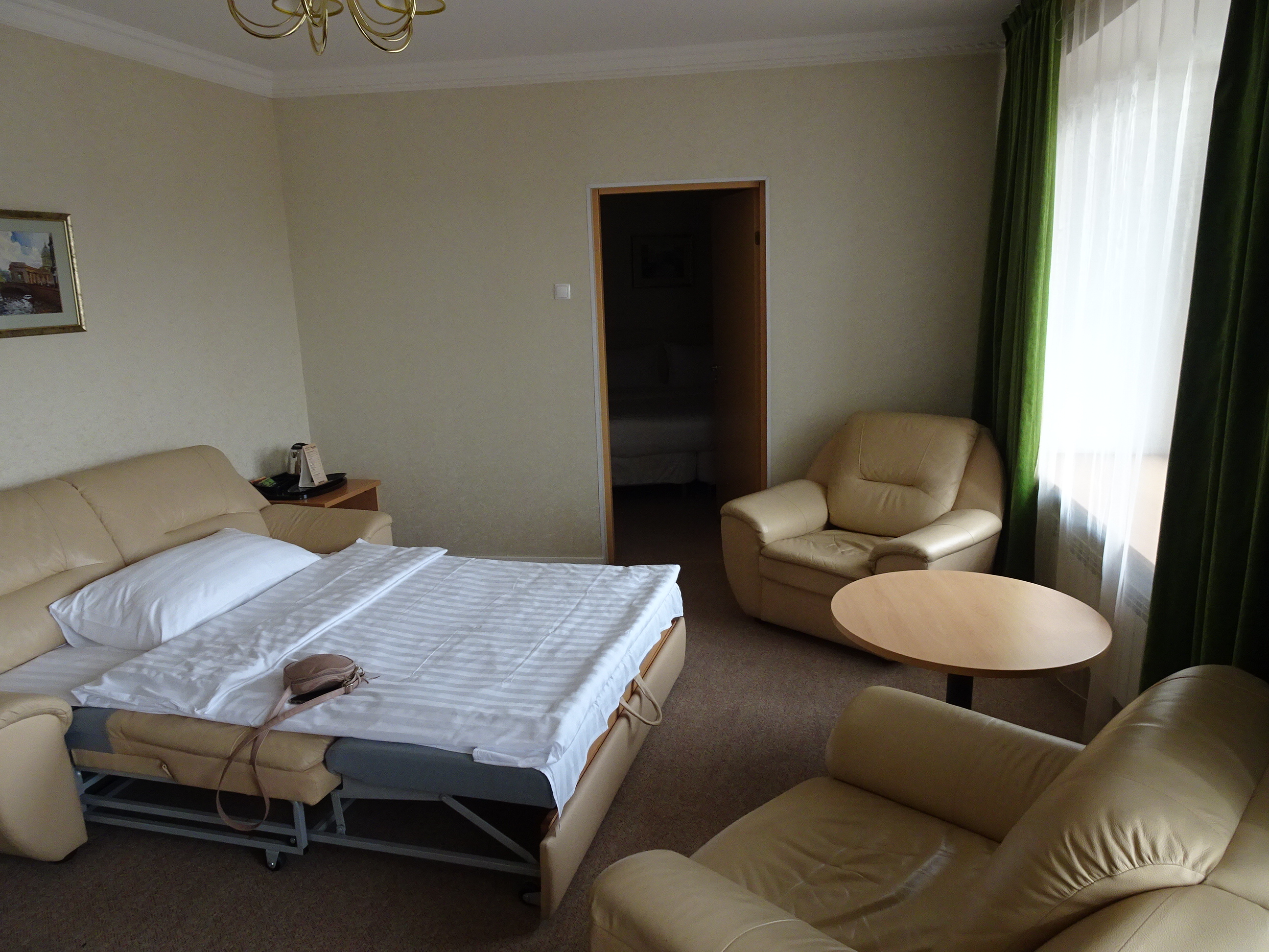 Pentru cele 5 zile în oraș am ales hotelul Moscova, aflat în zona de est a orașului. Este un hotel de 4 stele pe care îl recomand din plin. Nu este chiar central, dar are o mulțime de avantaje. Face parte dintr-un complex mare care include multe restaurante, hypermarket, magazine de suveniruri și chiar o stație de metrou – practic tot ce aveam nevoie era la doi pași. La recepție am fost întâmpinați călduros și am primit un upgrade de la o cameră dublă la un apartament spațios. Am fost extrem de mulțumiți de alegerea făcută la cazare.