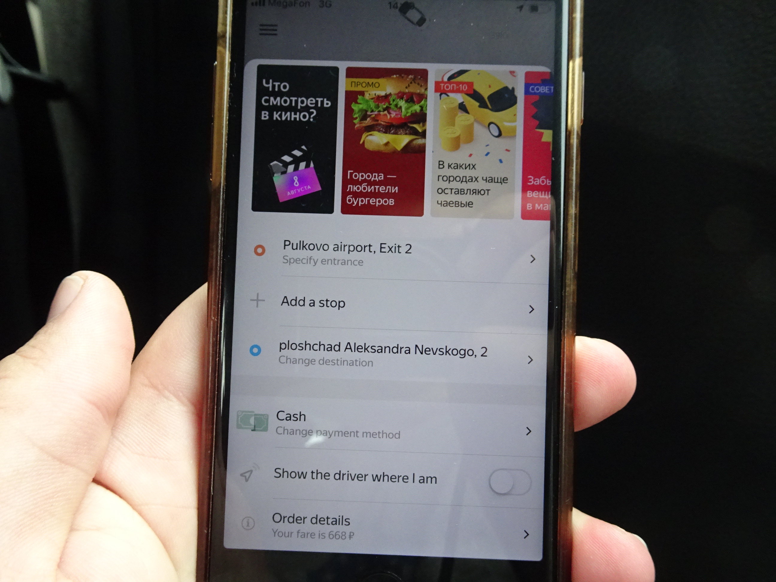 Aeroportul Pulkovo se află la 20 de kilometri de centru. Dacă prin oraș cel mai bun mod de deplasare este metroul, acesta nu ajunge la aeroport, astfel că taxiul era singura opțiune. Cea mai convenabilă variantă de transport pe distanțe mai lungi s-a dovedit a fi aplicația Yandex (aceeași companie ca Yango de la noi). Aplicația a fost foarte utilă pentru a selecta destinația evitând discuțiile cu șoferii (care nu știu deloc engleză) și pentru a stabili tariful de la început (țepele pentru străini la taxiuri sunt comune).