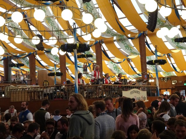 Fiecare cort are fanfară și muzică live. La fiecare jumătate de oră, se intonează imnul „Ein Prosit” iar toată lumea dă noroc și bea.