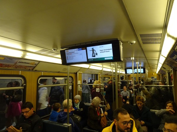 După plimbare, am revenit la metrou. Spre Theresienwiese trenurile erau extrem de aglomerate, dar accesul se făcea ordonat. Cam pe la al treilea tren ne-am urcat și noi.