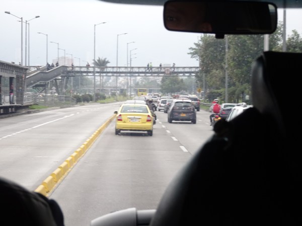 Drumul spre centrul Bogota. Am observat șosele bune, un transport public modern, o mulțime de mașini noi dar și un trafic groaznic de aglomerat.