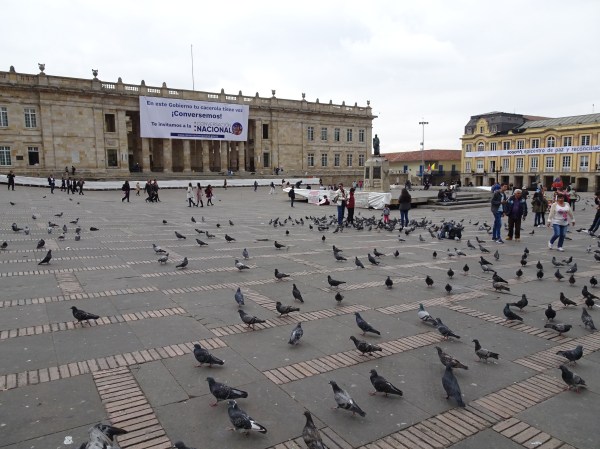 În fața catedralei este Plaza Bolivar, practic inima orașului. Pe latura opusă este Congresul National al Columbiei